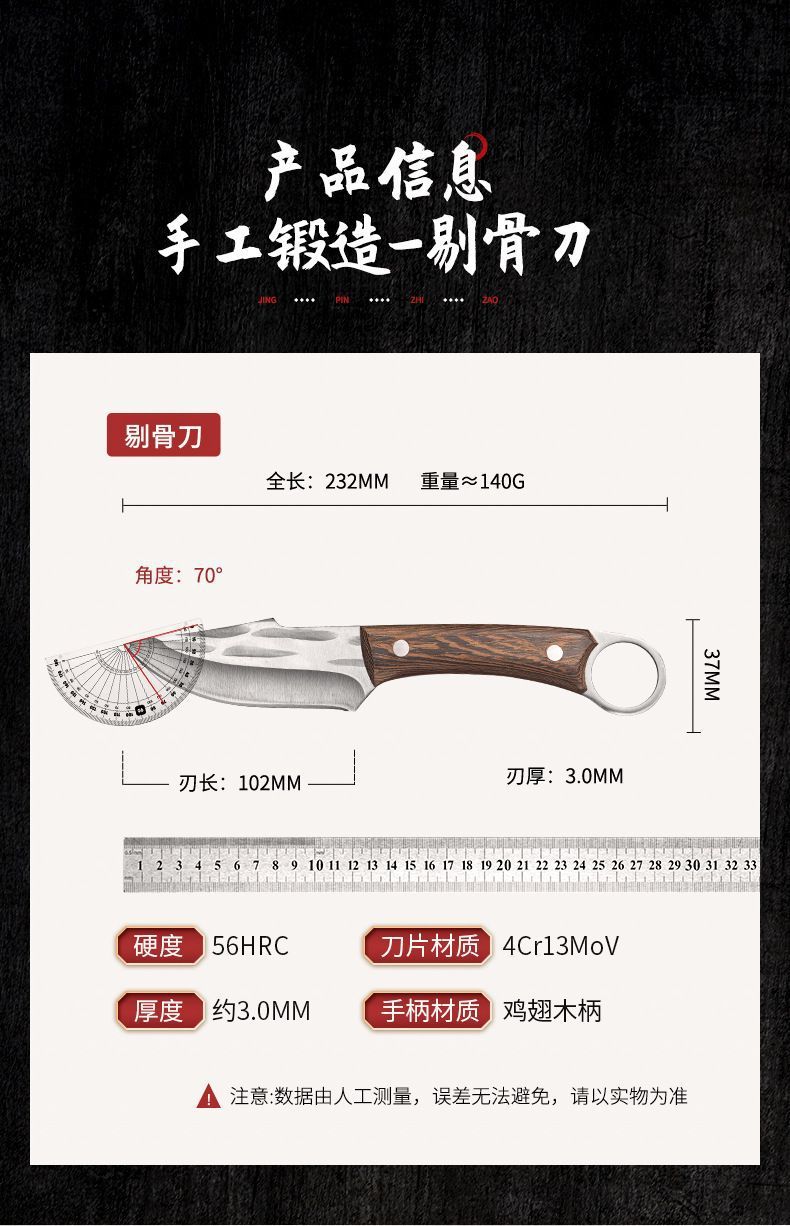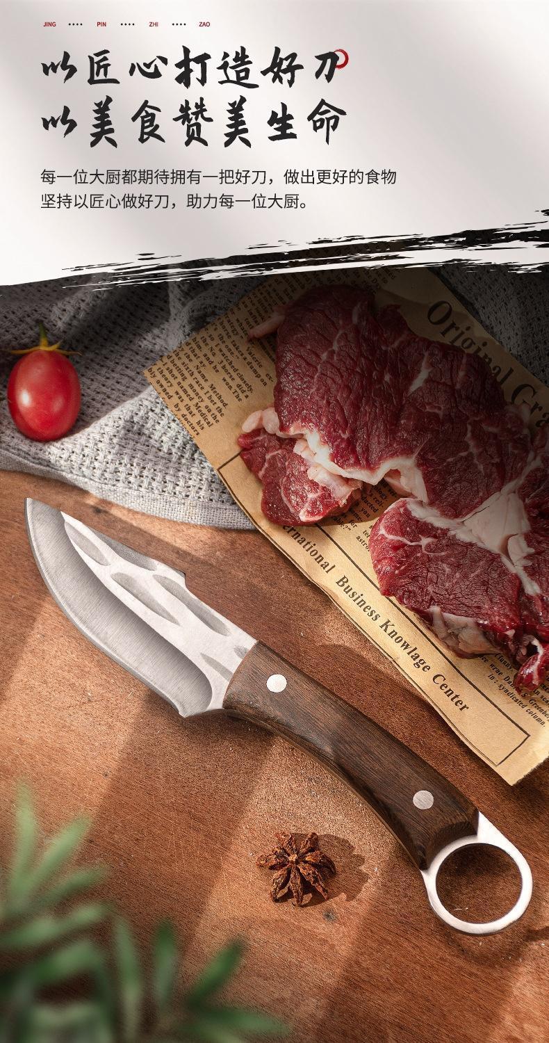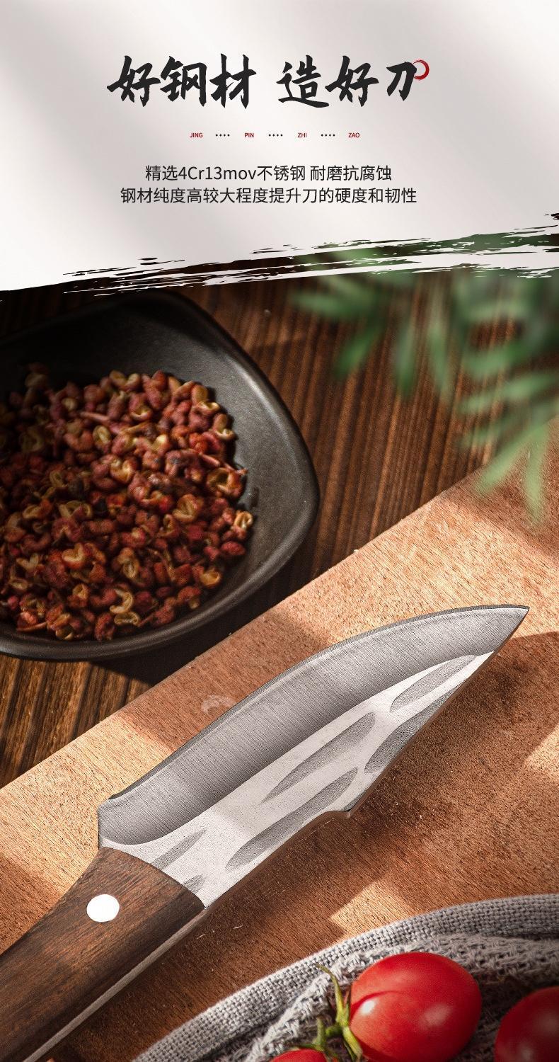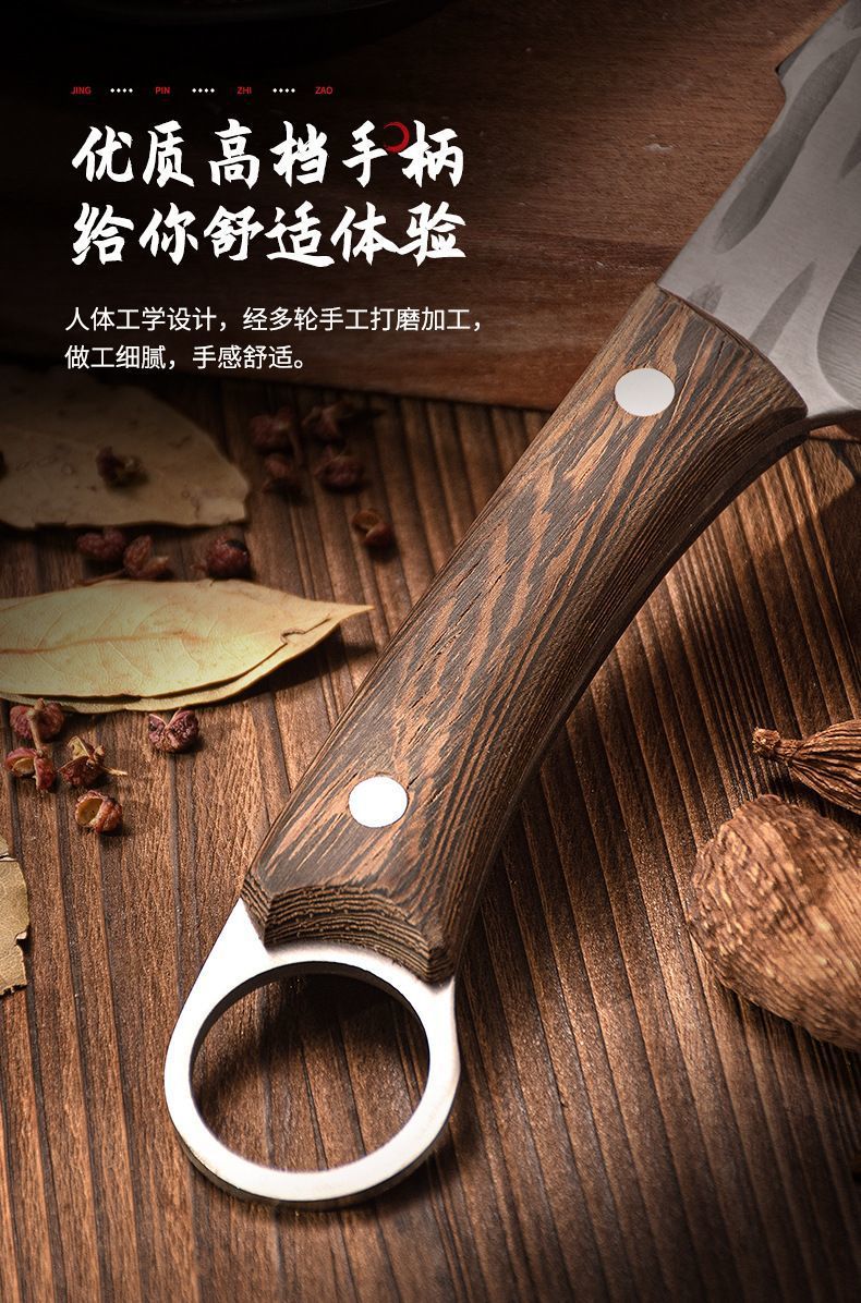 木柄2.5厚【革カバー付き】家庭用ハンドル肉多機能ナイフ屋外野炊ナイフ手すり肉切り