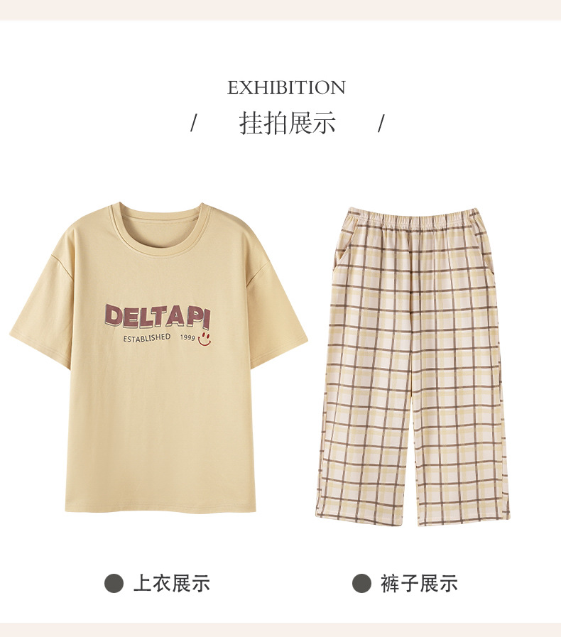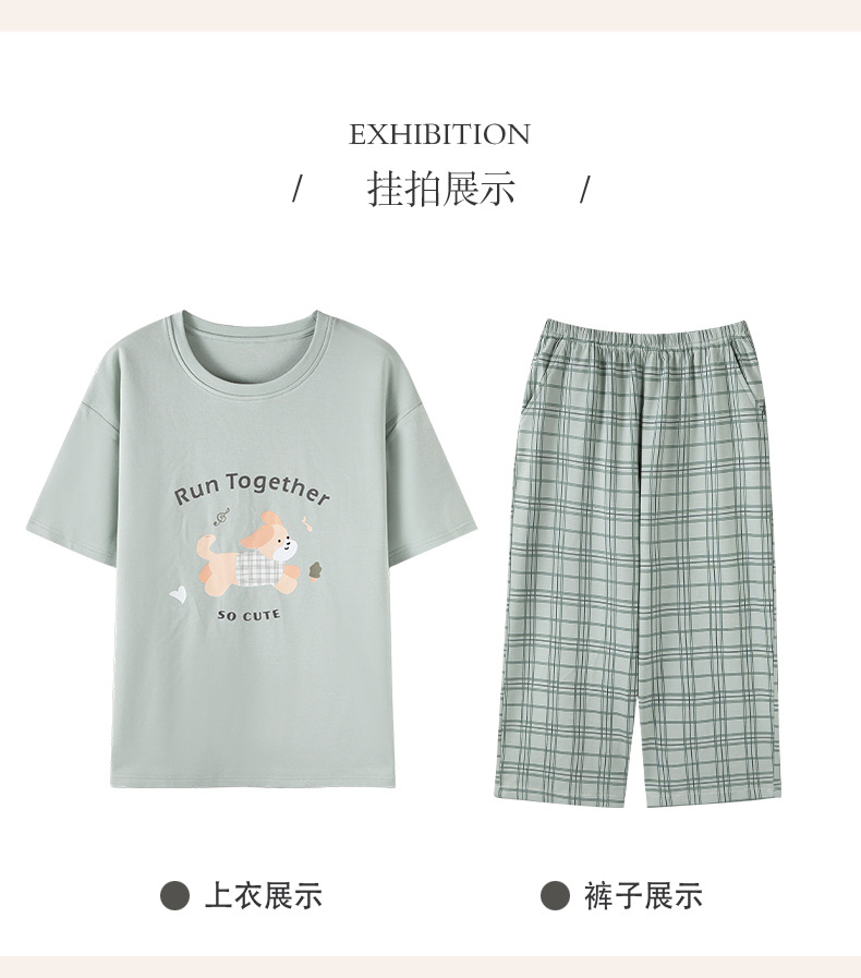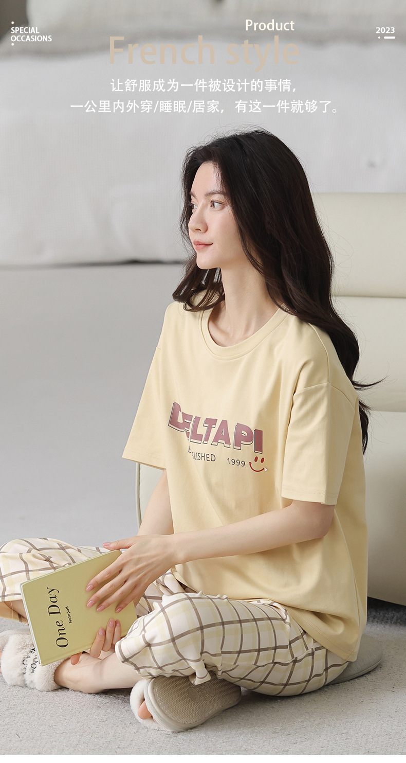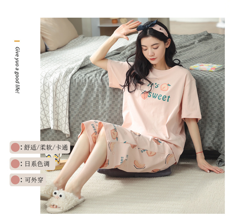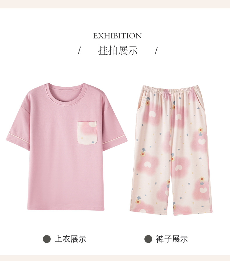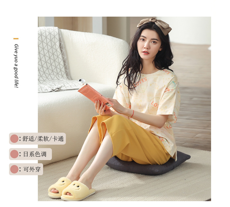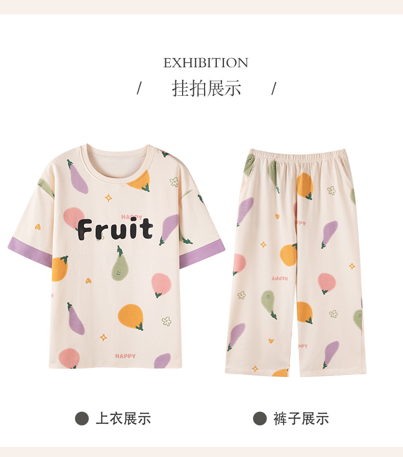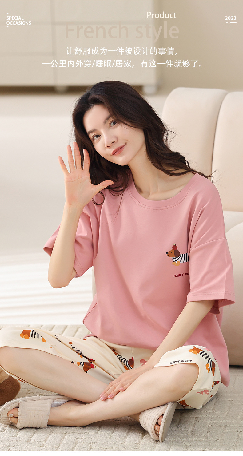 新しいパジャマの女性の夏の純綿の半袖の7分のズボンのかわいいレジャーは家庭服のスーツを着ることができます。