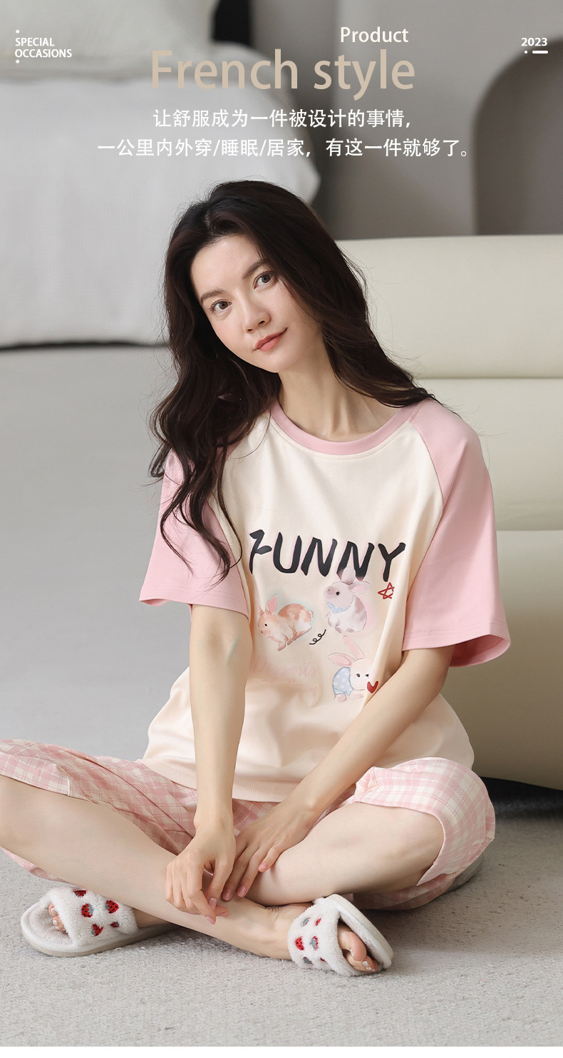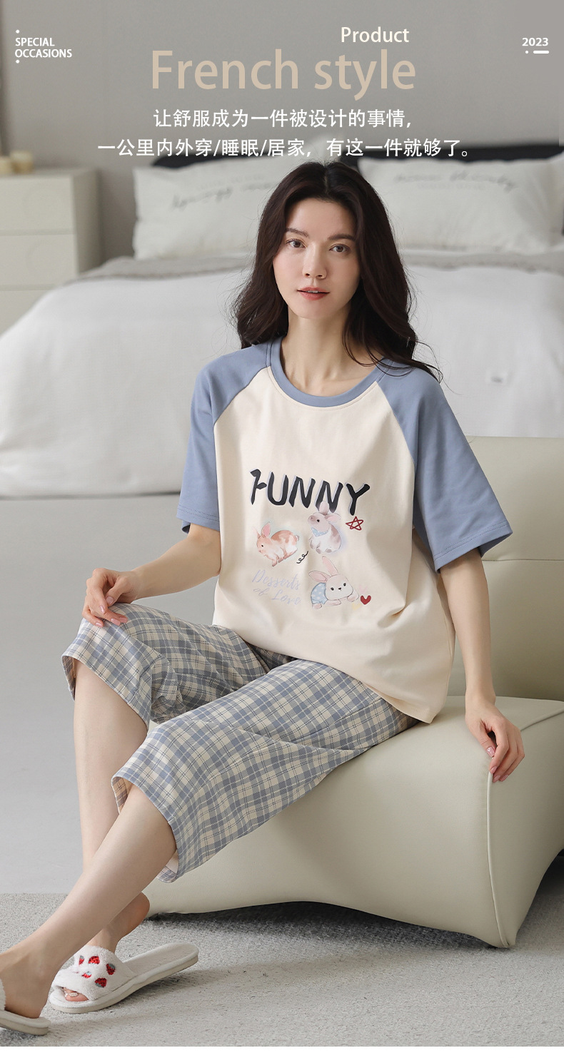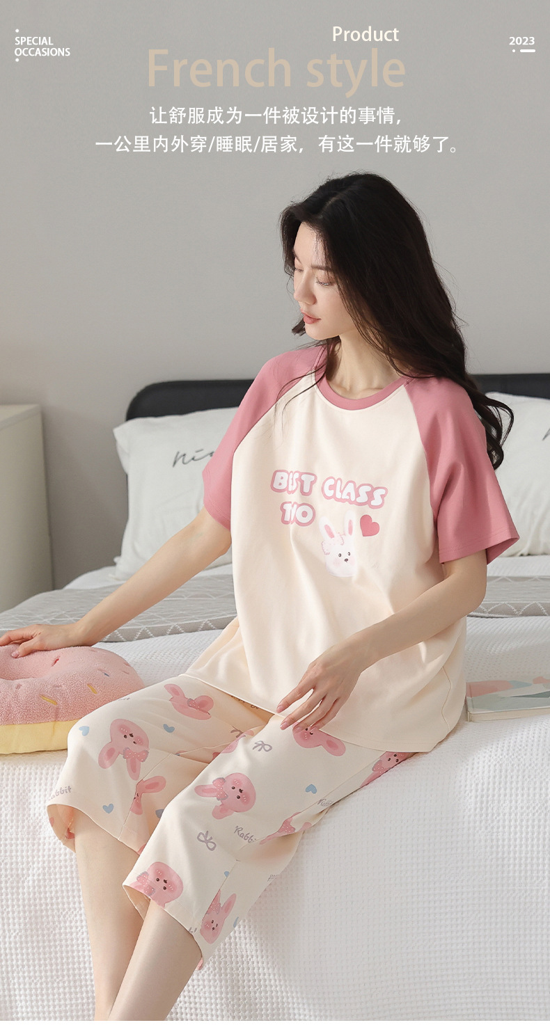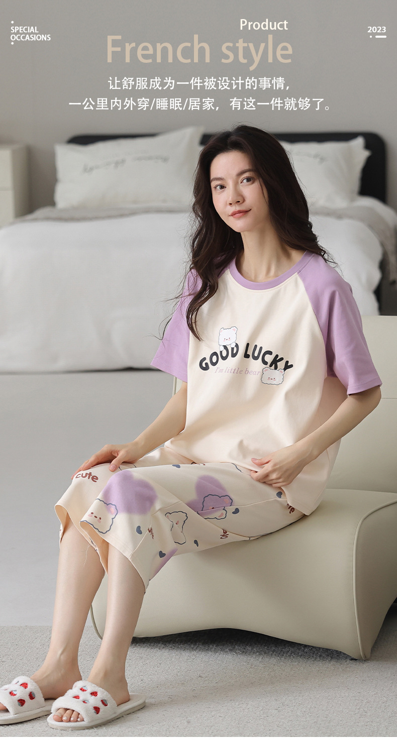 睡衣女夏纯棉夏季新款短袖七分裤韩版休闲可爱外穿家居服套装女士