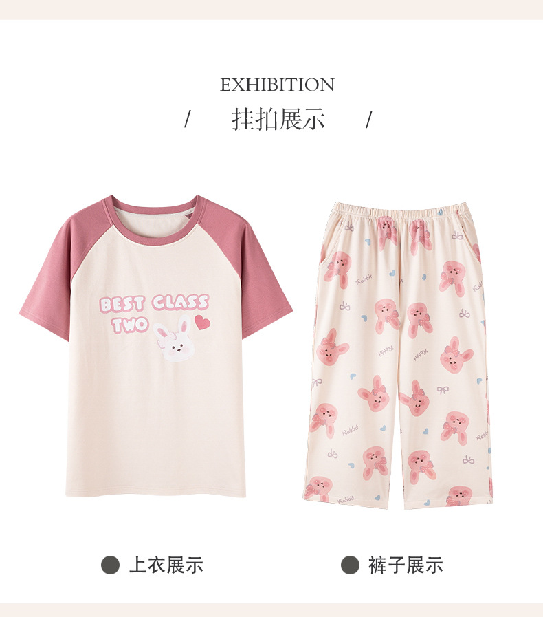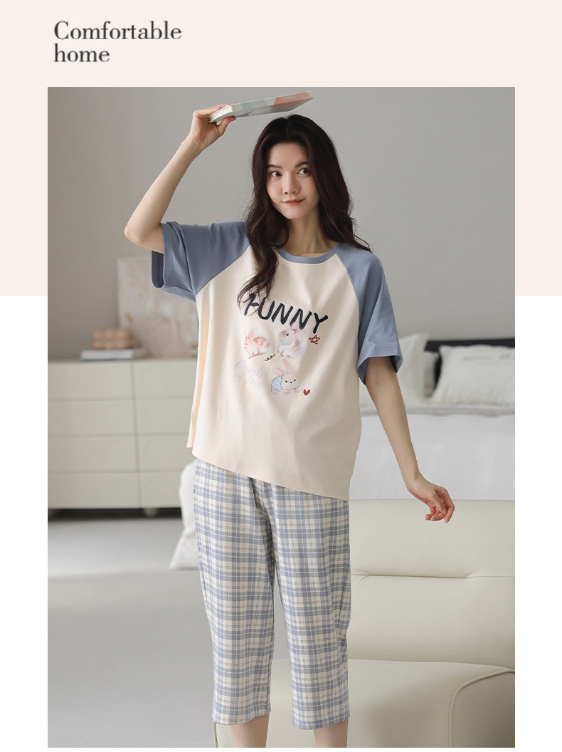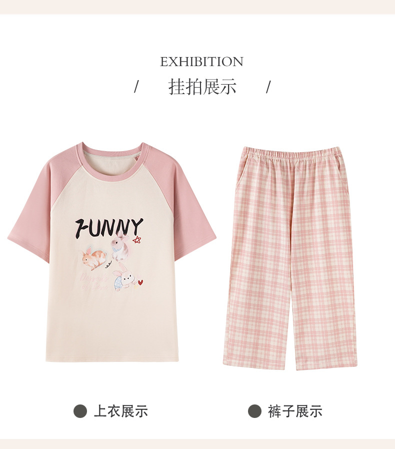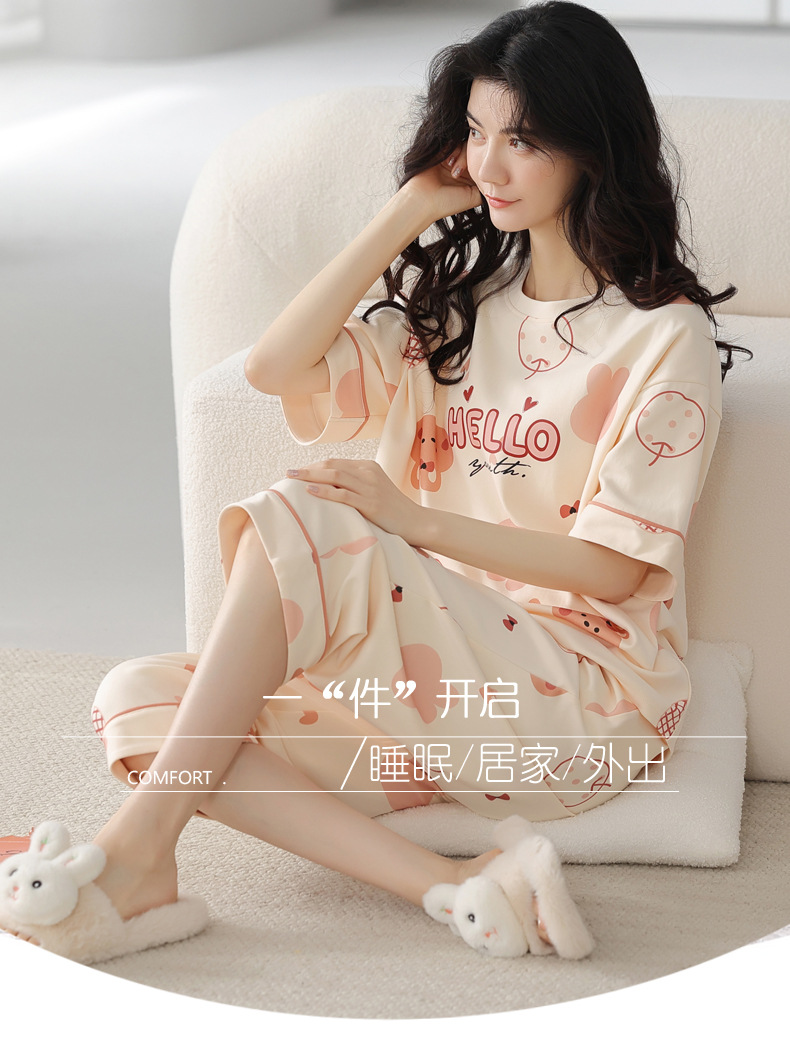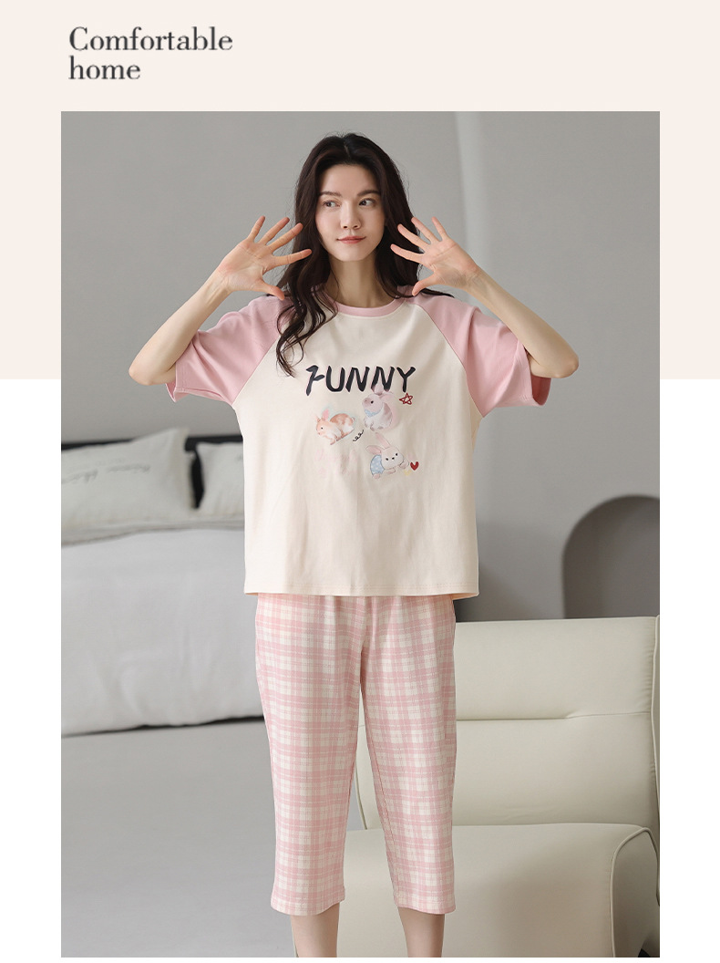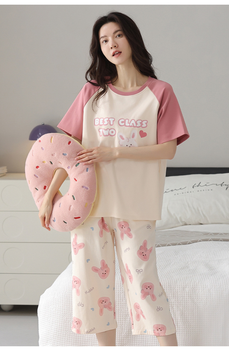 睡衣女夏纯棉夏季新款短袖七分裤韩版休闲可爱外穿家居服套装女士