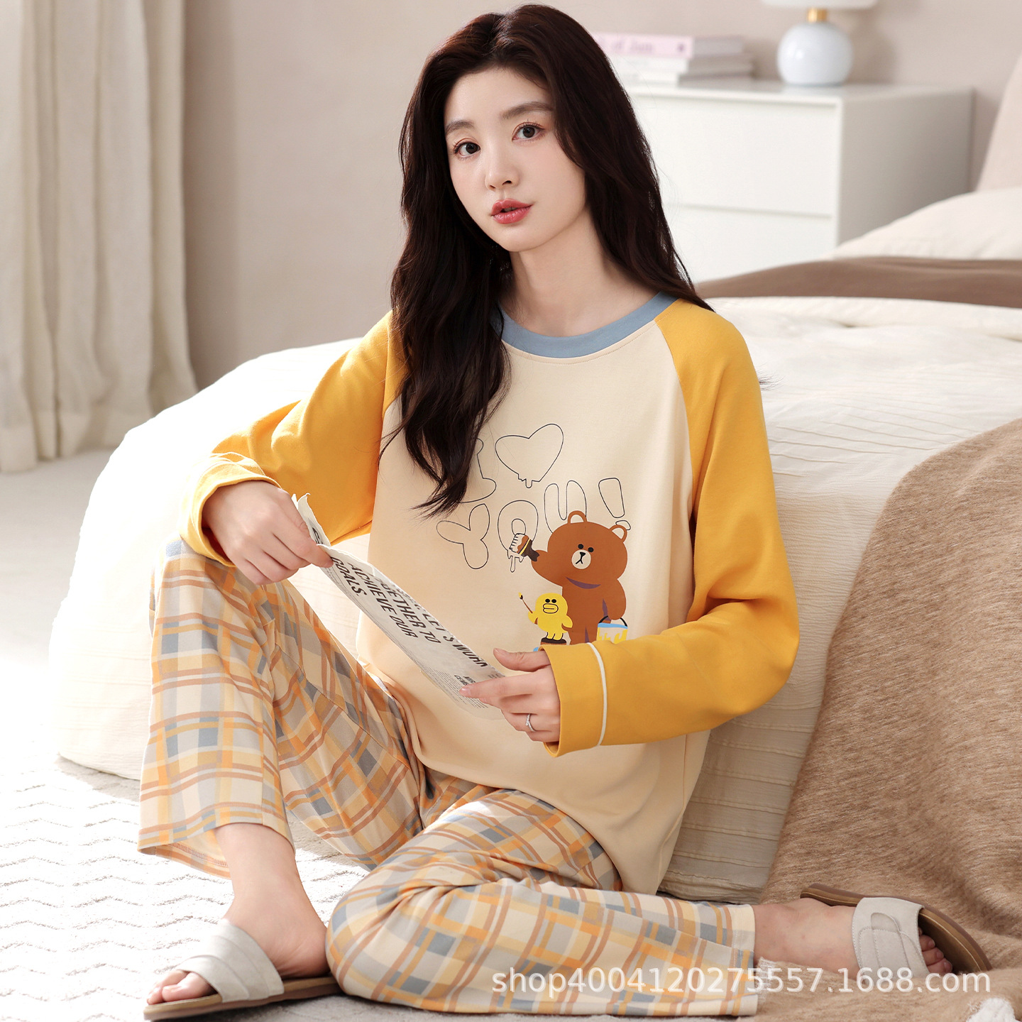 パジャマの女性春秋の純綿の長袖のズボンはカジュアルです。