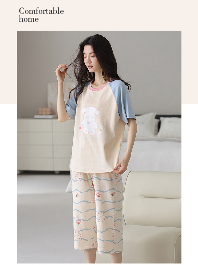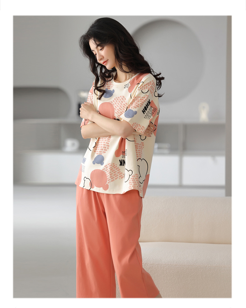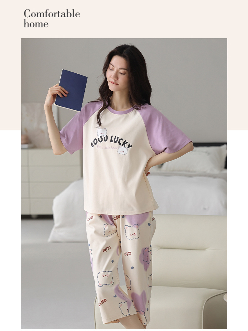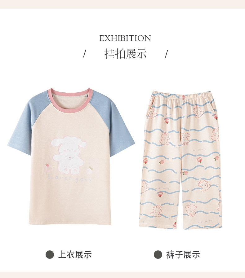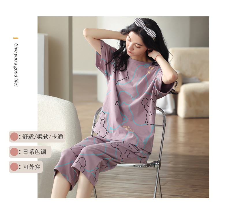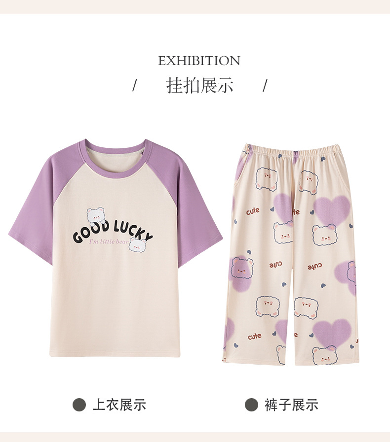 100% 純綿パジャマ女性春夏半袖七分ズボン韓国版アニメ女性薄い家庭服綿セット