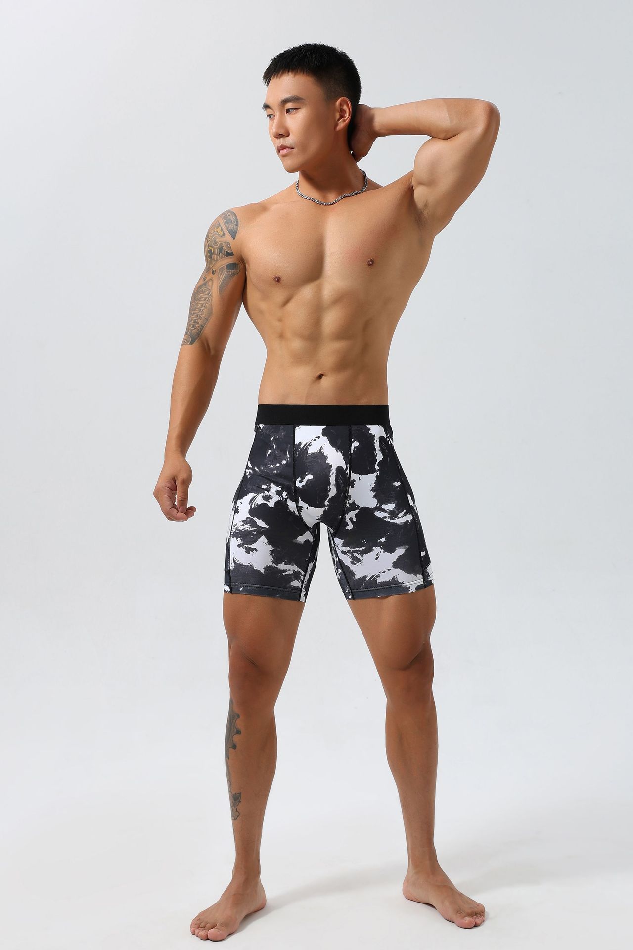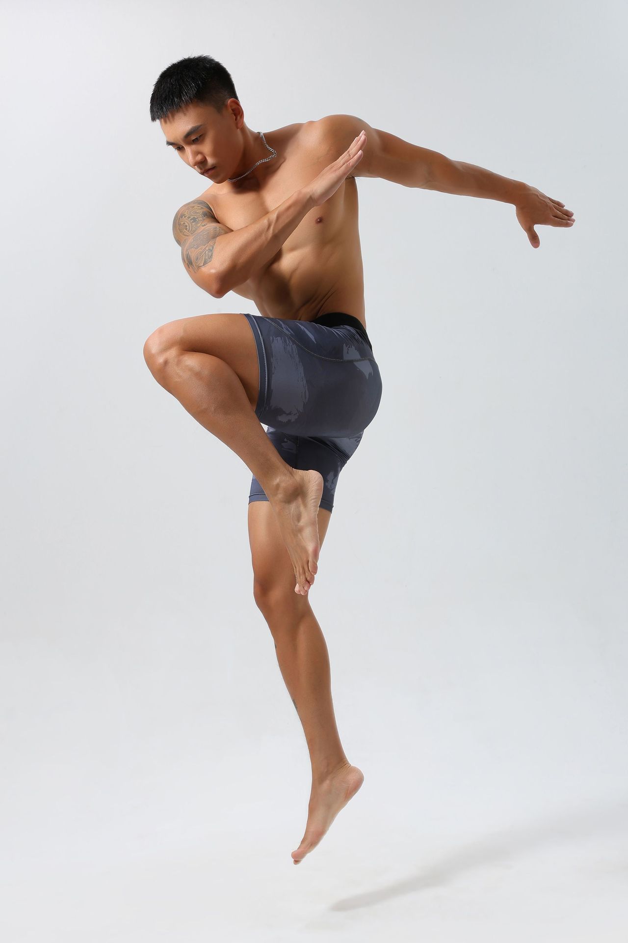 B6 119高腰腹フィットネス運動パンツ男性高弾圧縮レギンスランニングマラソン五分ズボン