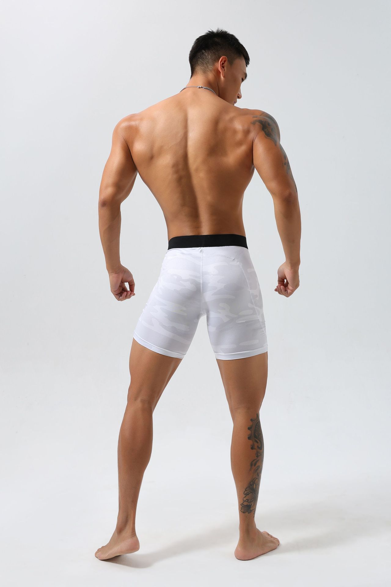 フィットネスのタイツの男性の速乾の牛乳の糸のガードルの3分のズボンの通気性は尻を提げてランニングするフィットネスの3分のズボン