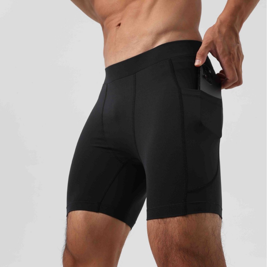 メンズPROフィットネス圧縮ショーツポケット付スポーツランニングトレーニング汗速乾ストレッチスキニーショーツ