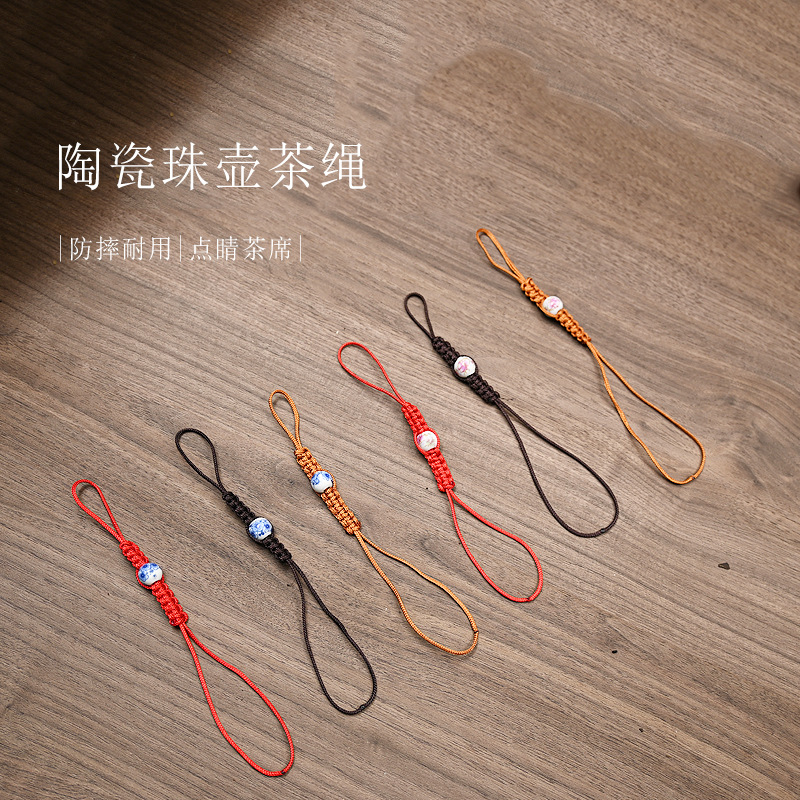 手織りティーポットロープセラミックビーズガラス紫砂ポットカバー転倒防止ロープティーカップロープ茶道部品