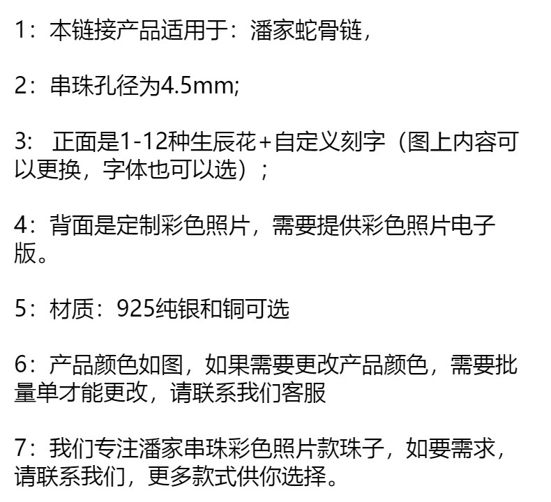 潘家拉s925純銀diyブレスレットアクセサリー散珠ハート形12生辰花写真ビーズアクセサリーメーカー