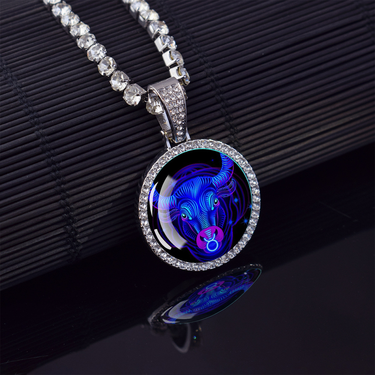 满钻星座吊坠网球链项链 时尚小众嘻哈饰品生日礼物 外贸跨境货源