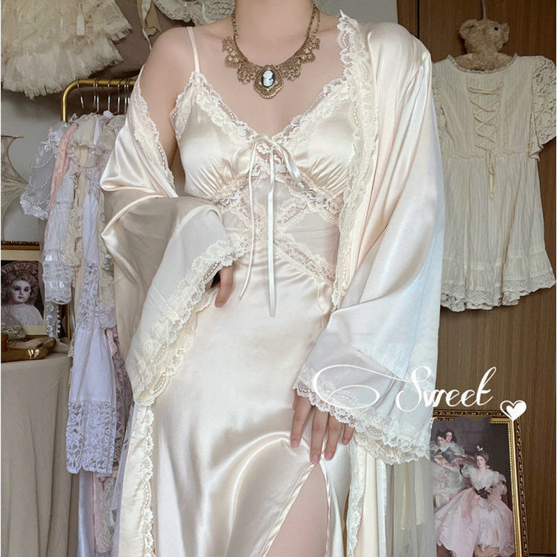 甘くて柔らかいモチモチの《夏の蝉の鳴き声》のフランスの復古の宮廷の風の超薄い眠りのスカートの2セットの朝着の超仙の爆発金