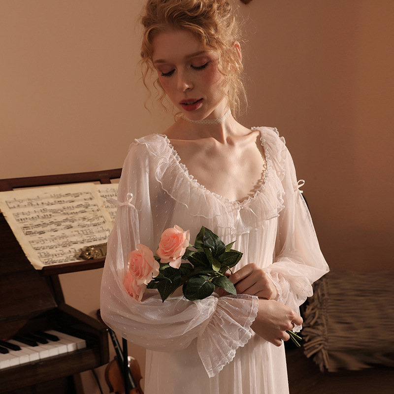 26春上新圆领波点网纱仙女睡裙高贵浪漫睡裙连衣睡裙居家服宽松