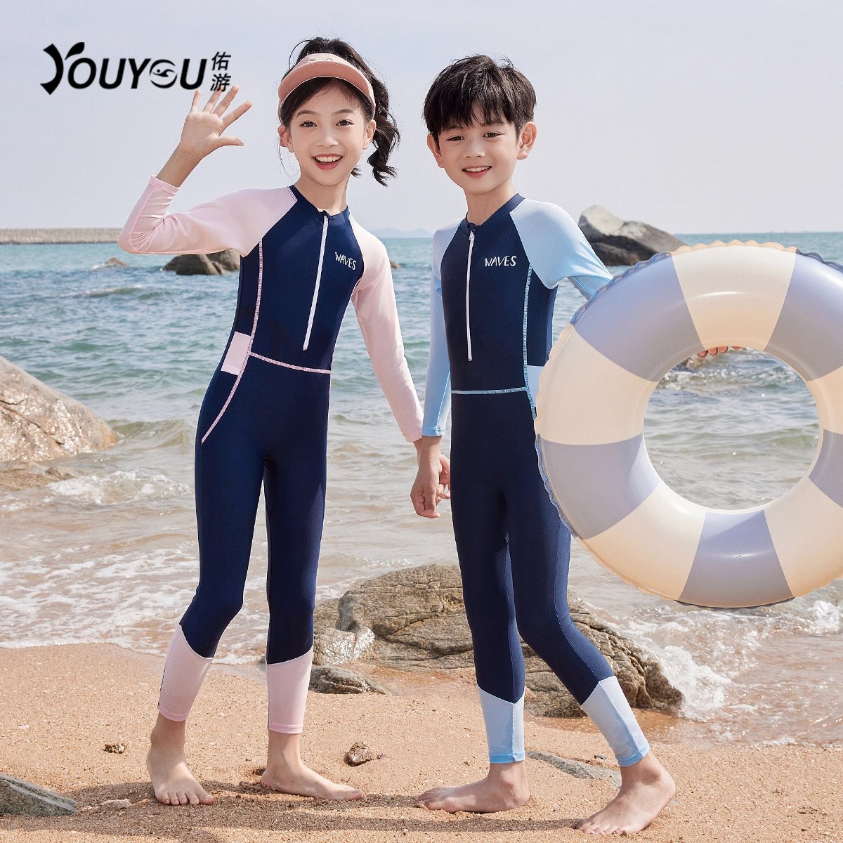 プルバック子供用水着男の子と女の子日焼け止め長袖ズボンワンピース中型および大型子供用ビーチプロ水着スーツ