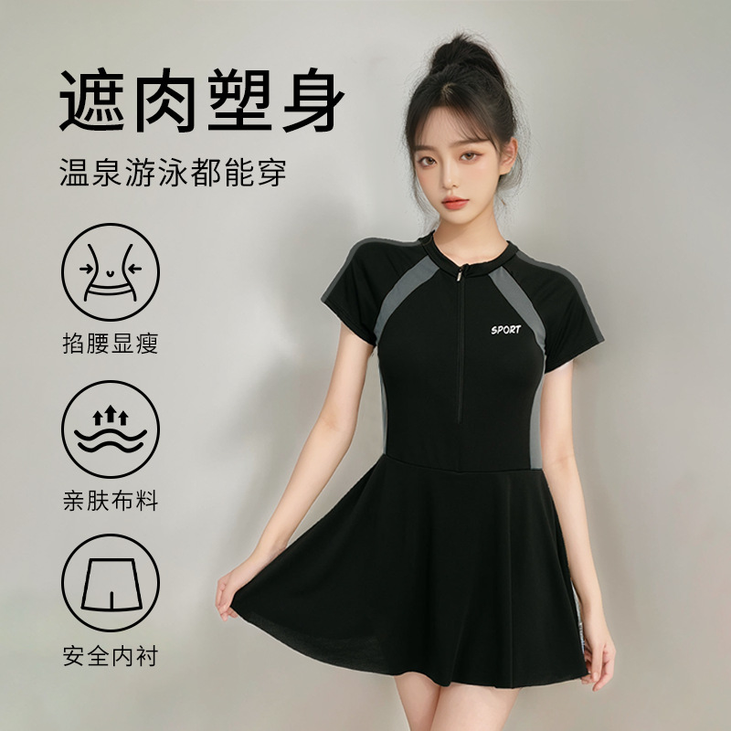 水着女性の夏ワンピース 2025 新しいスポーツスタイル大きいサイズスカートスタイルお腹カバー痩身保守的なファット mm 水着卸売