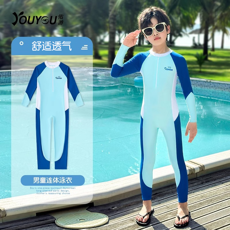 子供水着新しい男の子長袖ワンピース温泉小中大子供夏水着トランクスプロ水着卸売
