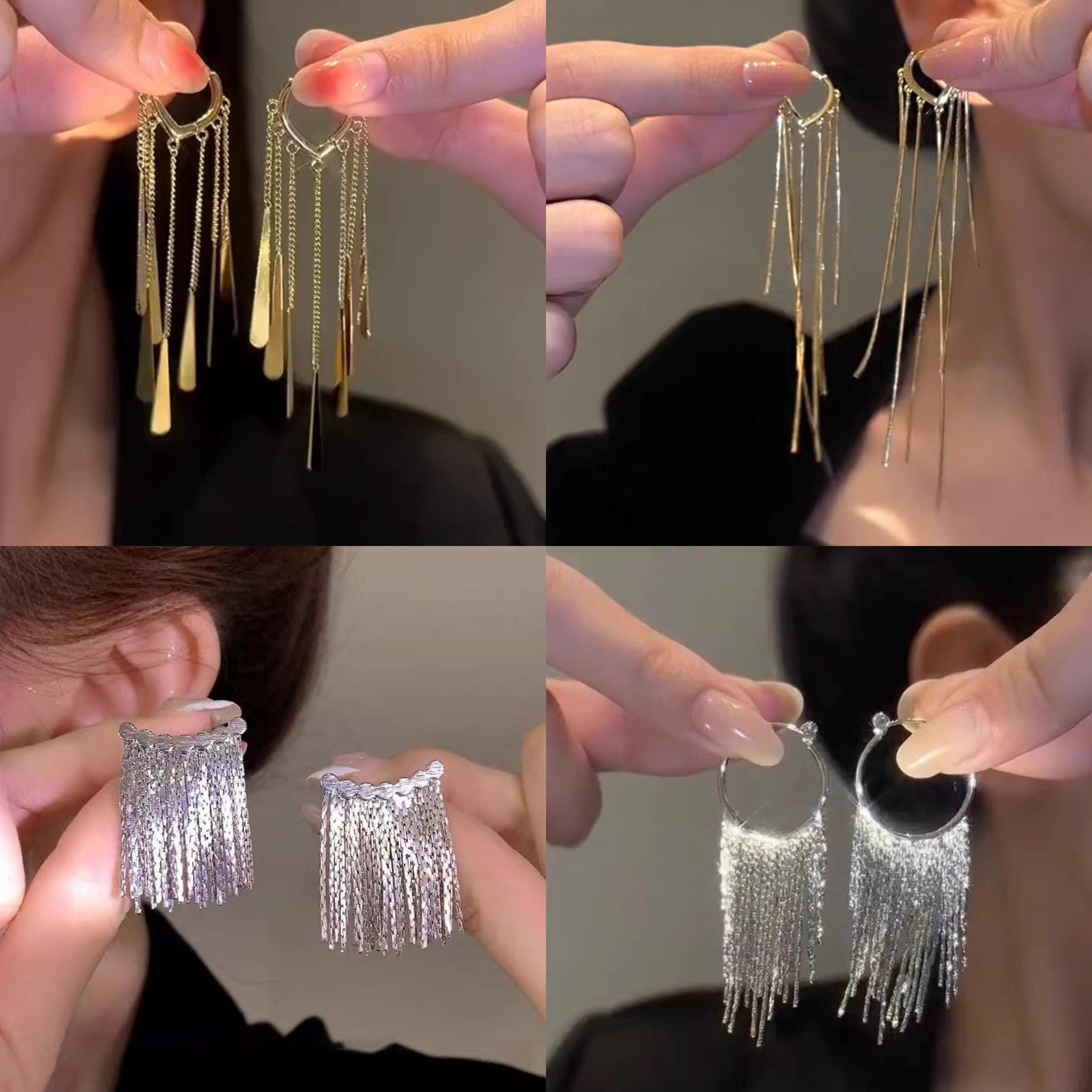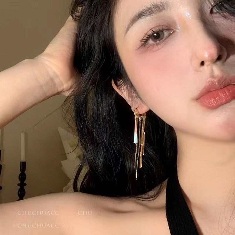 ロングタイプのフリンジ愛蚊取り盤耳挟み小衆デザイン感高級独特ファッション軽贅沢気質耳輪耳掛け