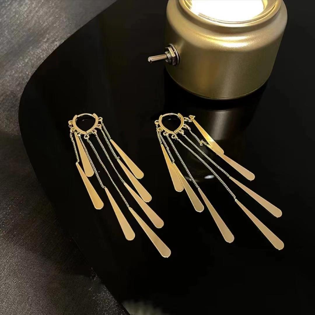 小衆デザイン感金属流蘇イヤリングイヤリング2023新型爆金高級感軽贅沢ピアス気質耳飾り