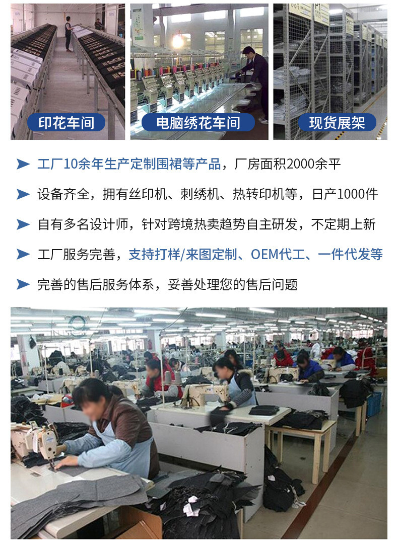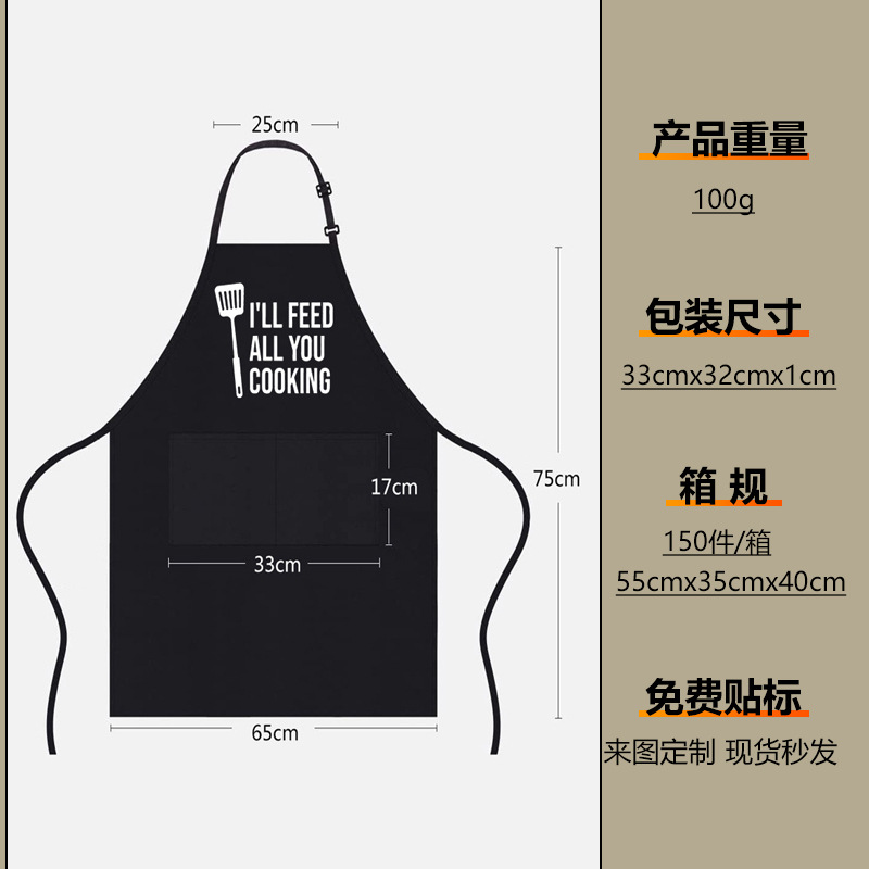 跨境爆款涤纶围裙家用厨房防污男女情侣烘焙烧烤字母印花围裙批发