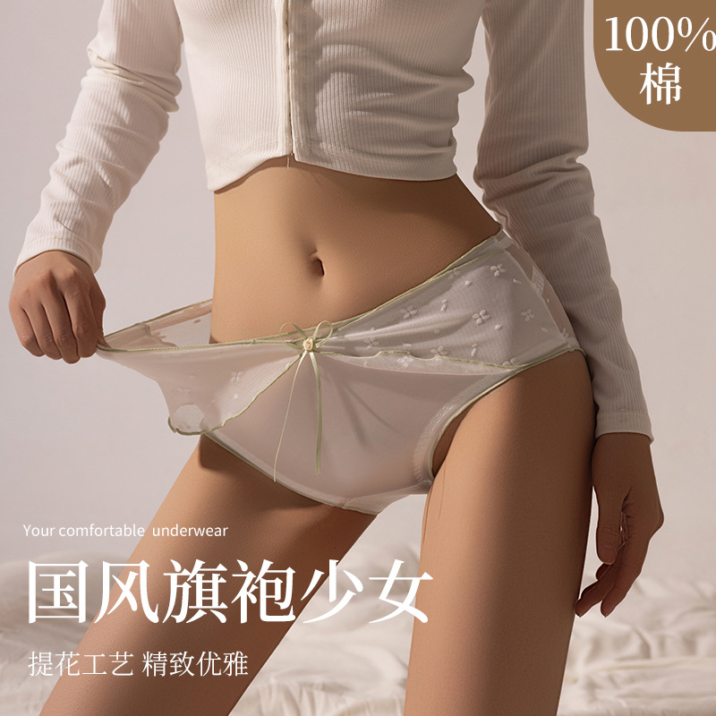 国風の白い月の光のセクシーな半透レースの下着の純綿の股の通気性の女性の三角レースの下着