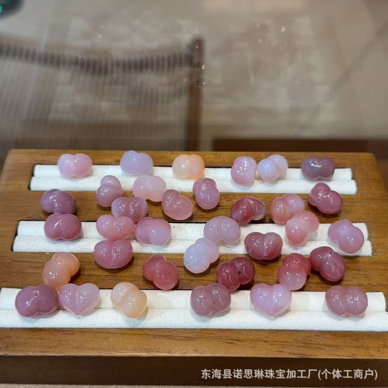 天然粉糯玛瑙屁桃竖孔diy配件手工编织手绳项链文玩佛珠挂件手串