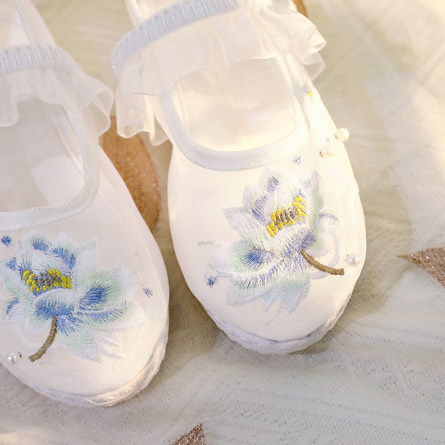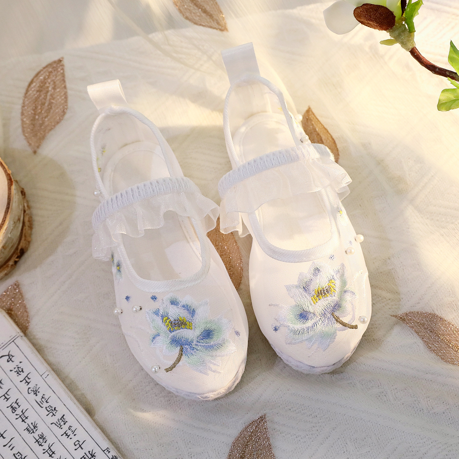 ネットの靴の弓の靴の漢服の靴のスパイクの国風の時代劇のネットの糸の刺繍の布の靴の夏の女性のサンダル