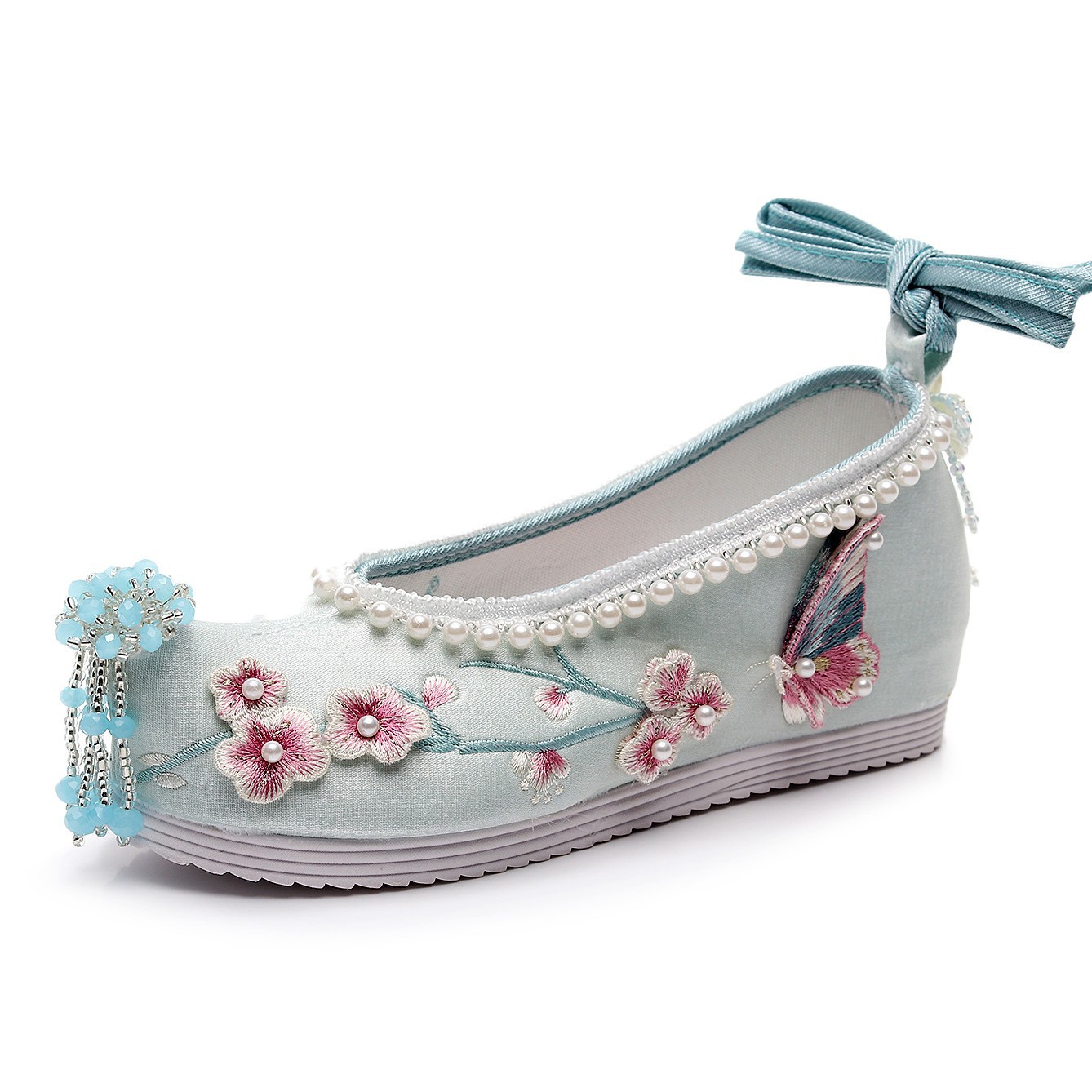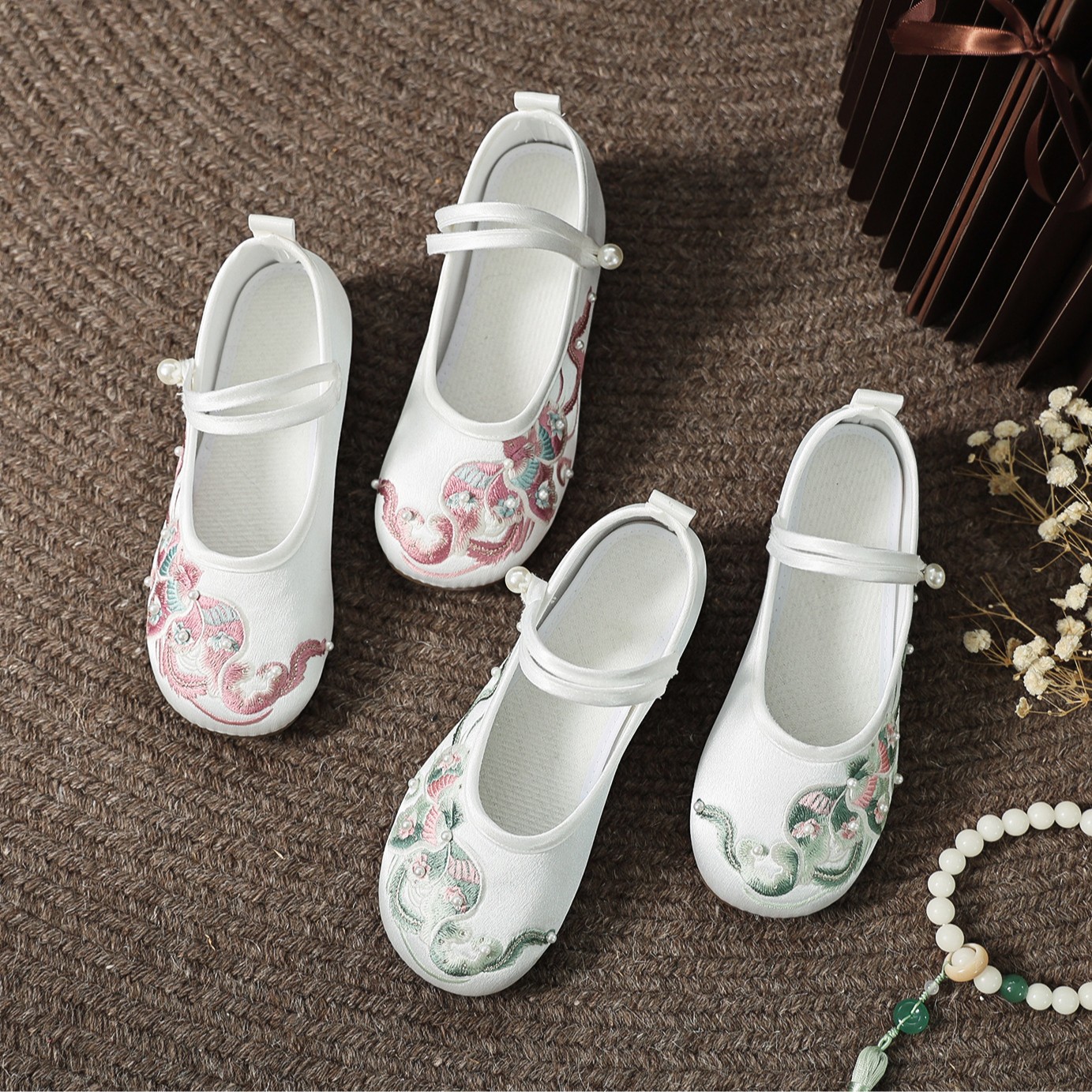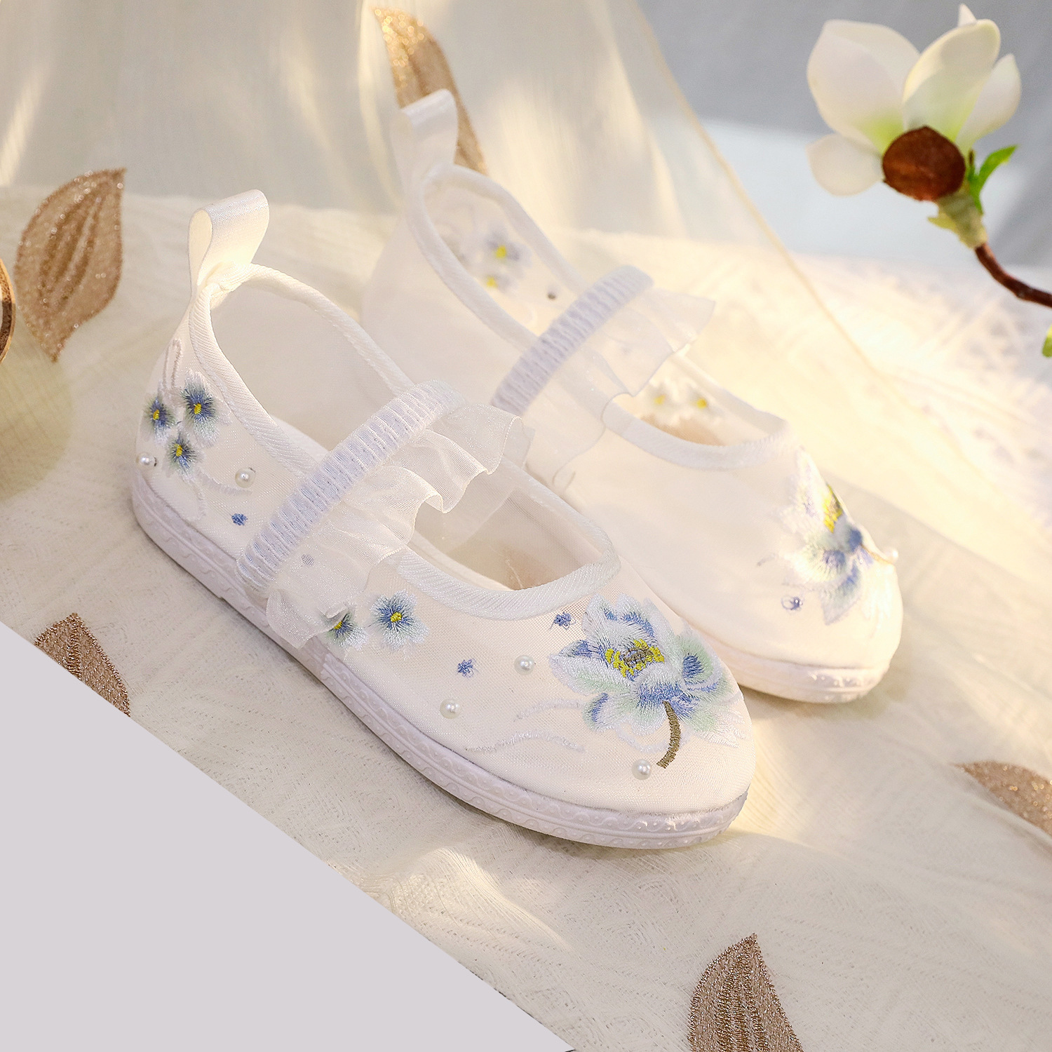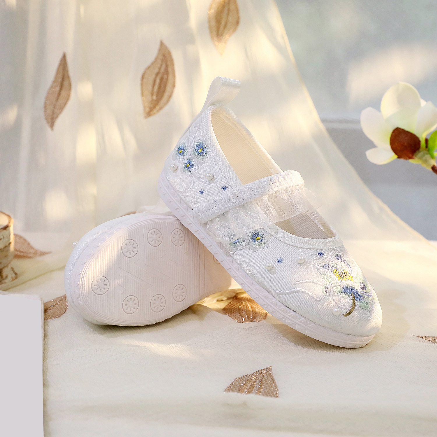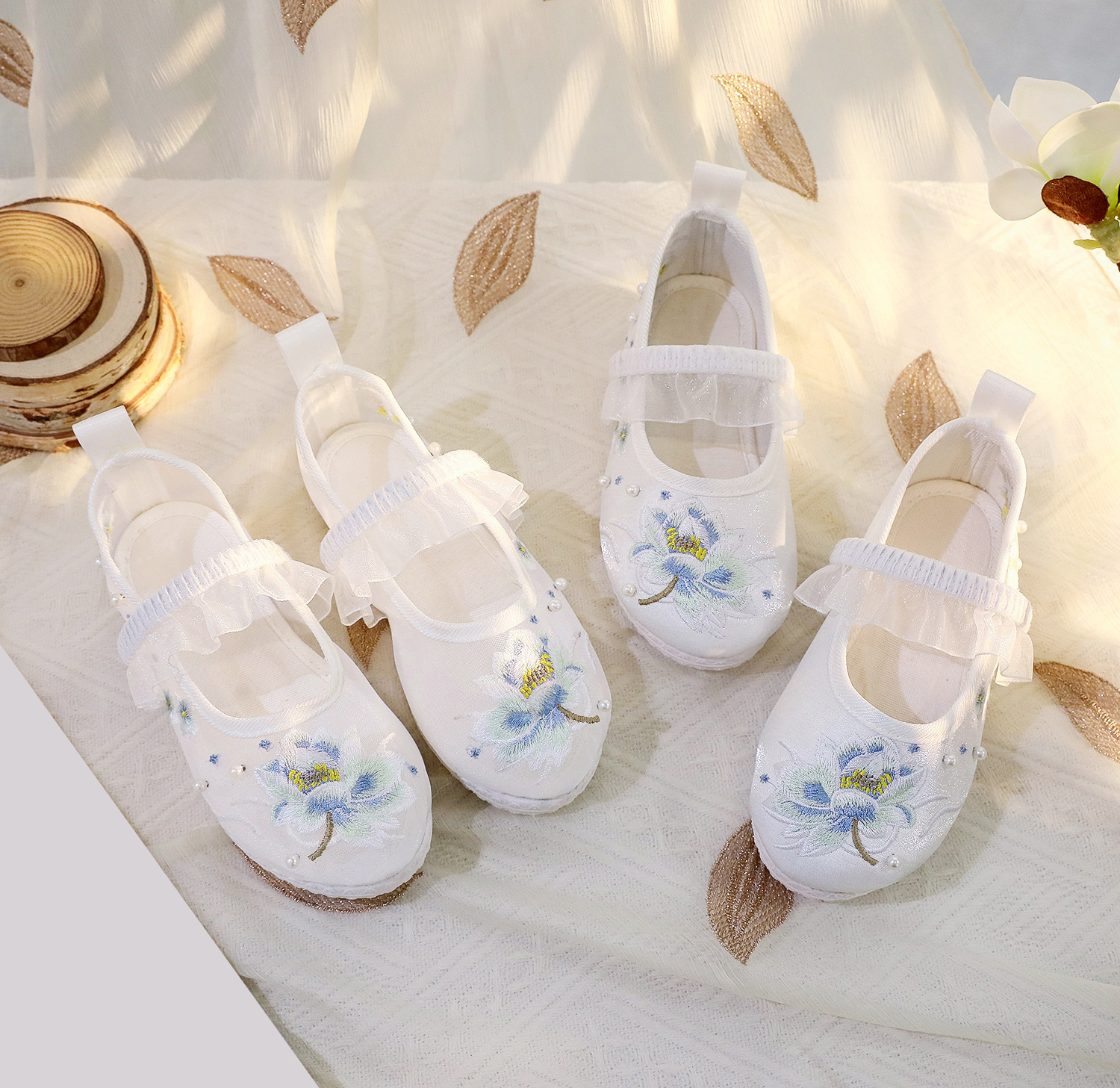 漢服刺繍靴少女民族風靴演出靴子供布靴古風漢靴ショー古着靴