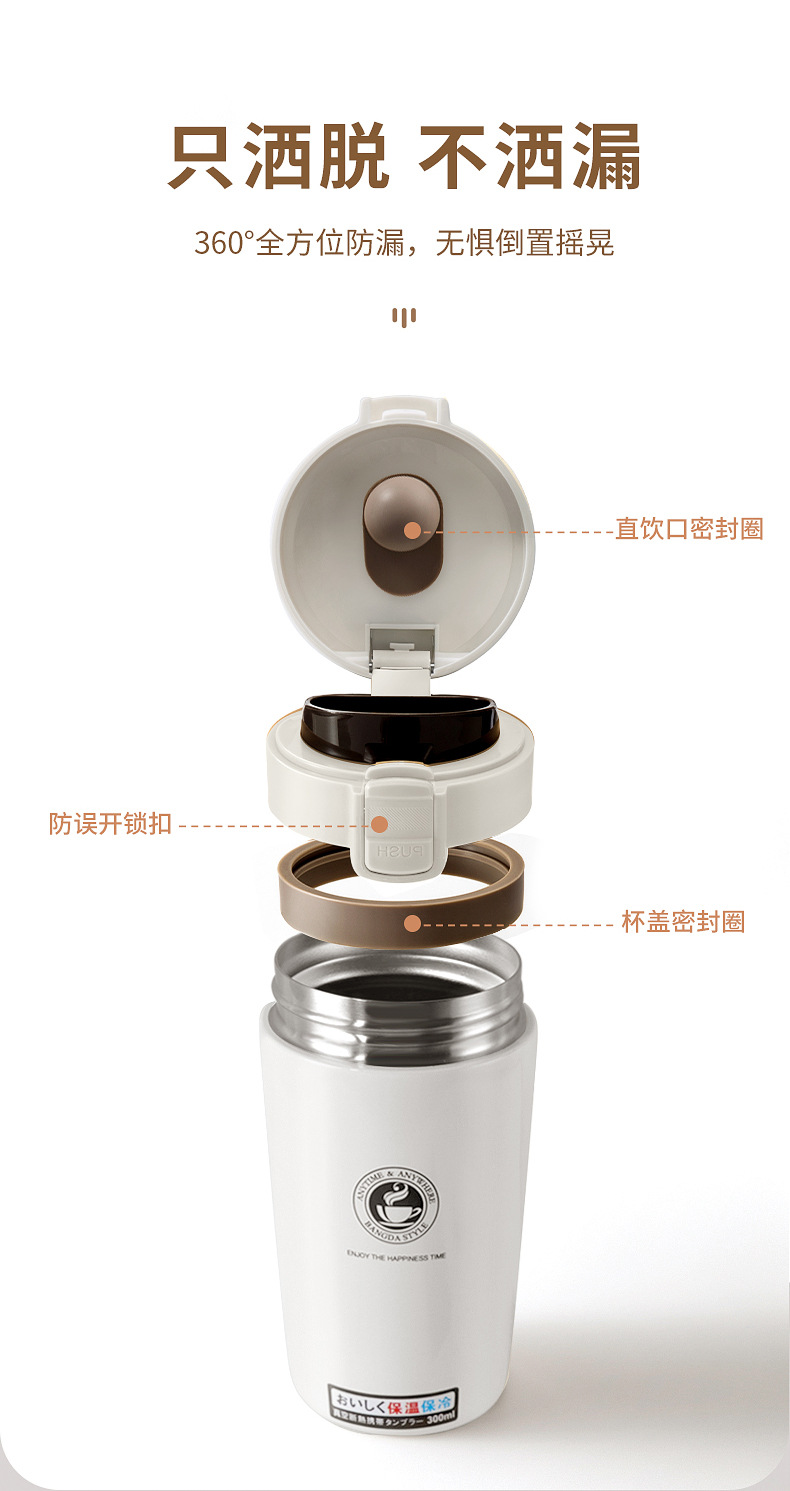 双饮口咖啡杯高颜值316不锈钢陶瓷内胆保温杯来图刻字随手铃兰杯