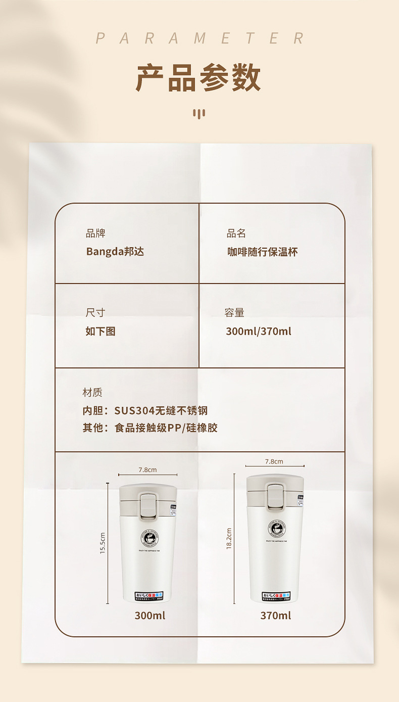 邦達高颜値コーヒーカップ携帯型ステンレス保温カップ男女コーヒー随行カップ事務プレゼント