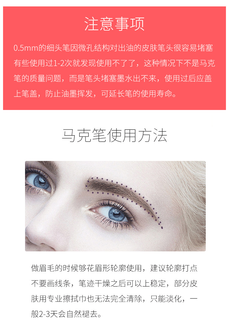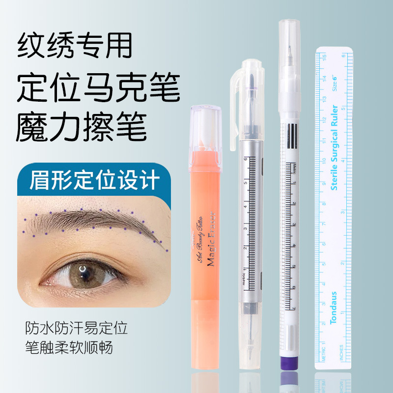 纹绣师专用马克笔防麻定位眉型笔防水唇线记号笔纹绣用品魔力擦笔
