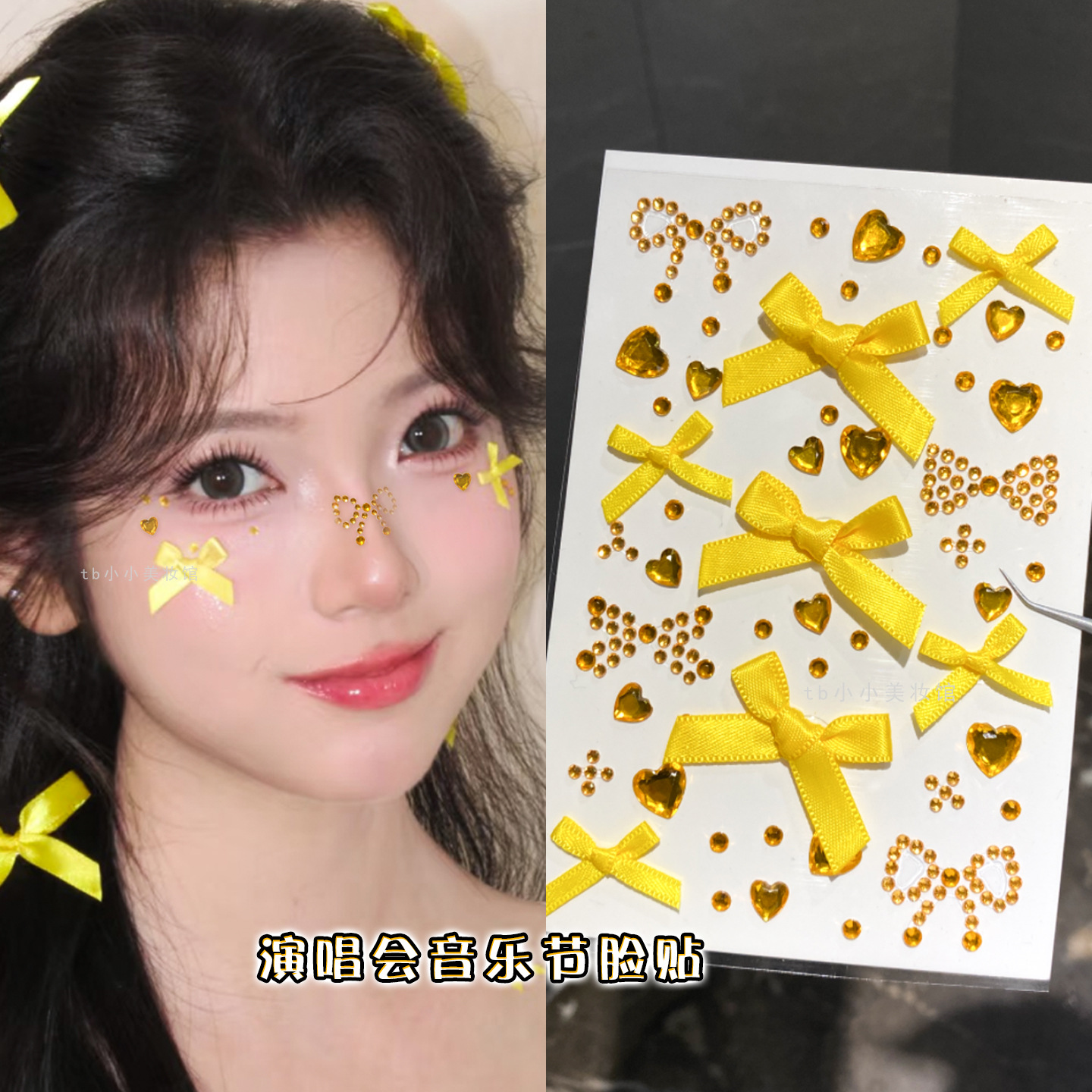 黄色应援妆演唱会造型脸上饰品蝴蝶结水钻亮钻眼妆贴饰音乐节闪钻