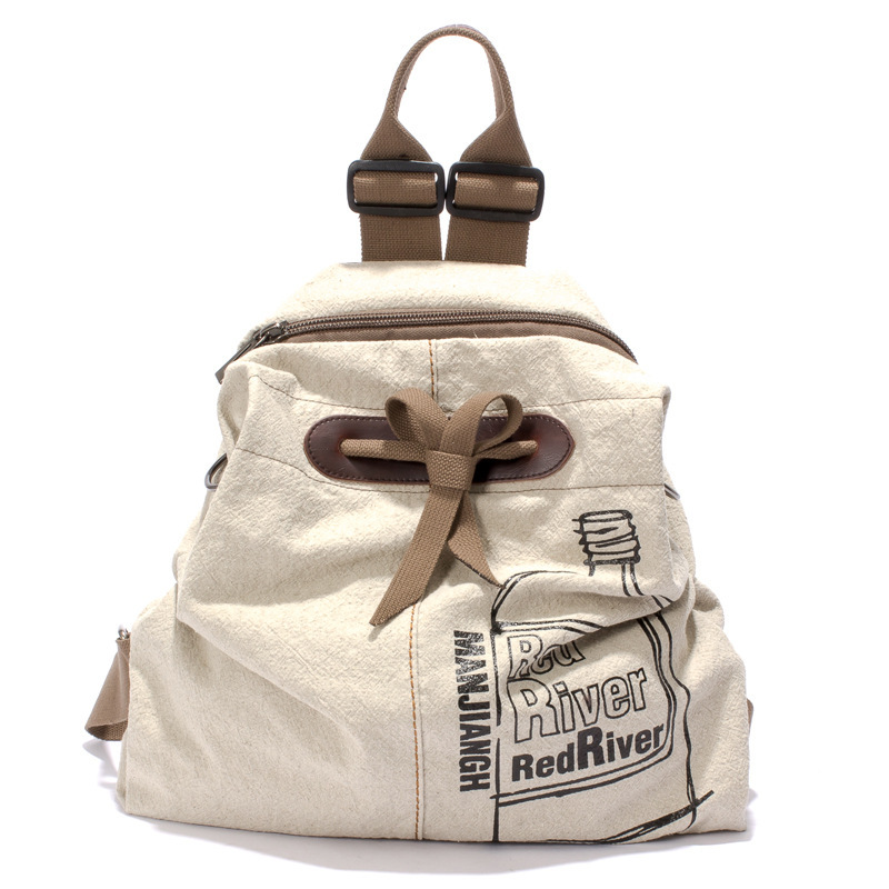 简约棉麻双肩包女韩版涂鸦休闲包潮搭时尚旅行包褶皱潮流学生书包