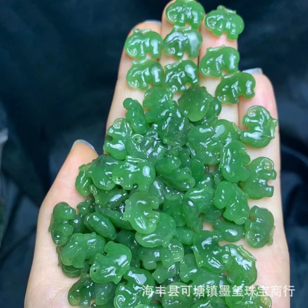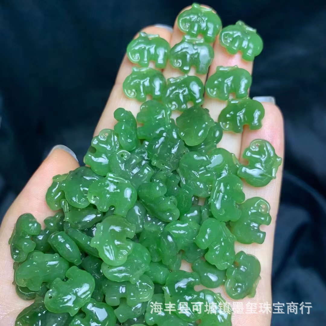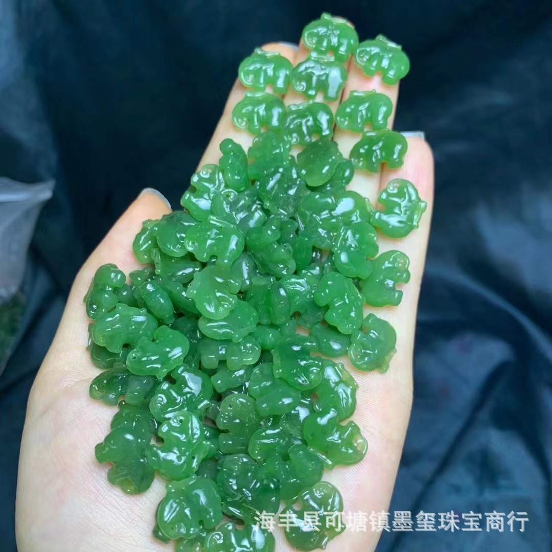 和田碧玉象ほうれん草緑diy部品無黒点ペンダント穴ネックレス手串小部品メーカー卸売り