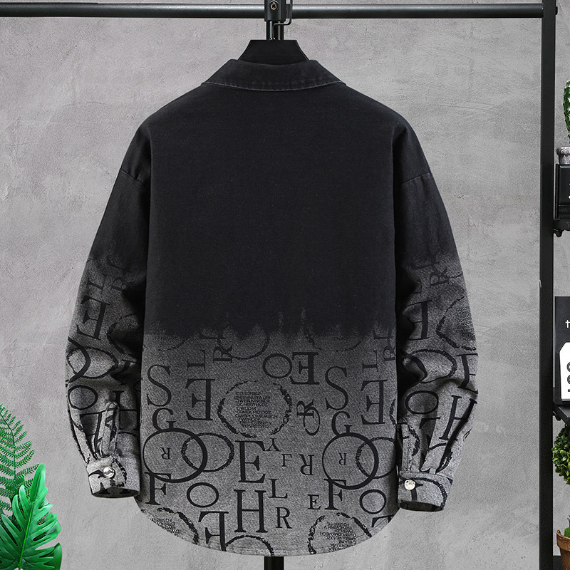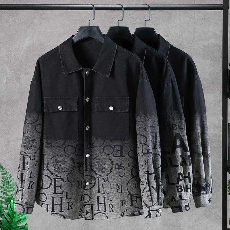 カラー 8-02ブラックoeデニムジャケット,8-02黒いアルファベットのカウボーイコート