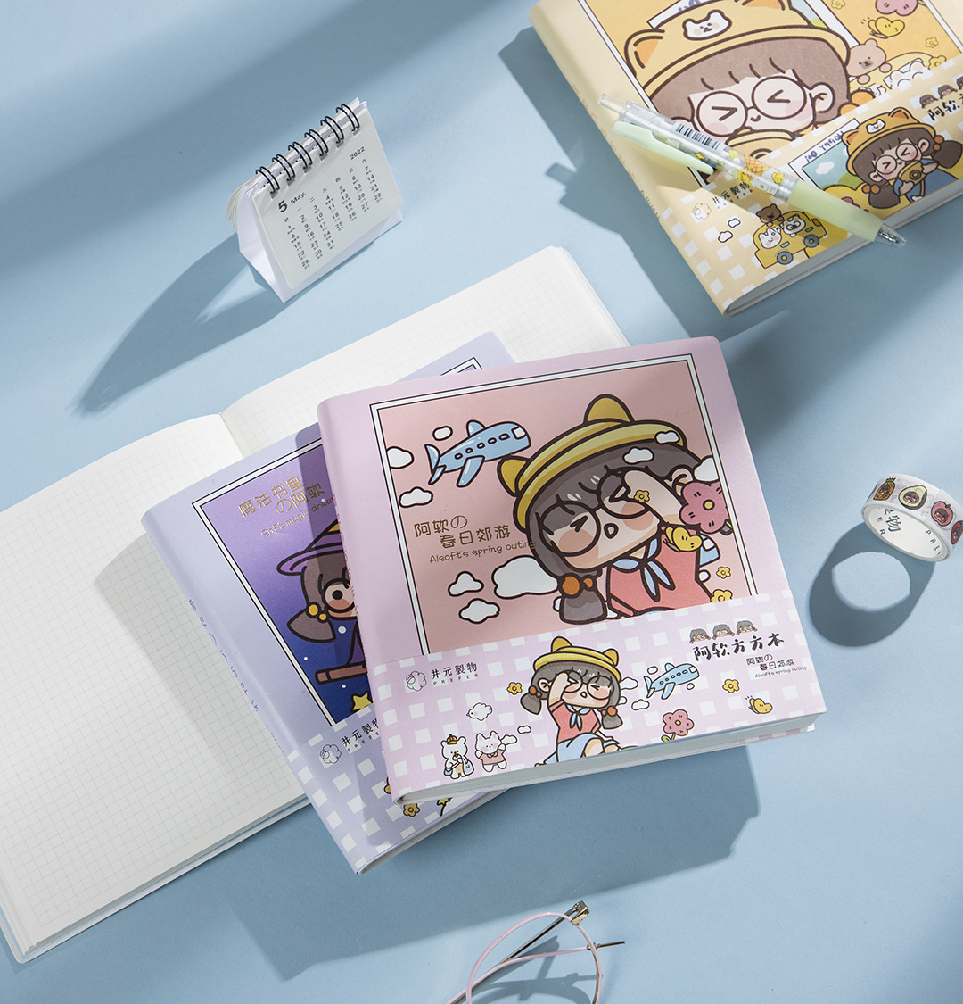 時美軟軟阿軟pu角型手帳方眼内ページ漫画表紙手帳diy本ノート