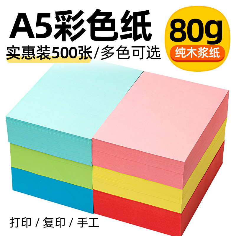500枚A5コピー用紙80g厚さプリント紙70グラム証明書色紙学生折り紙事務用紙