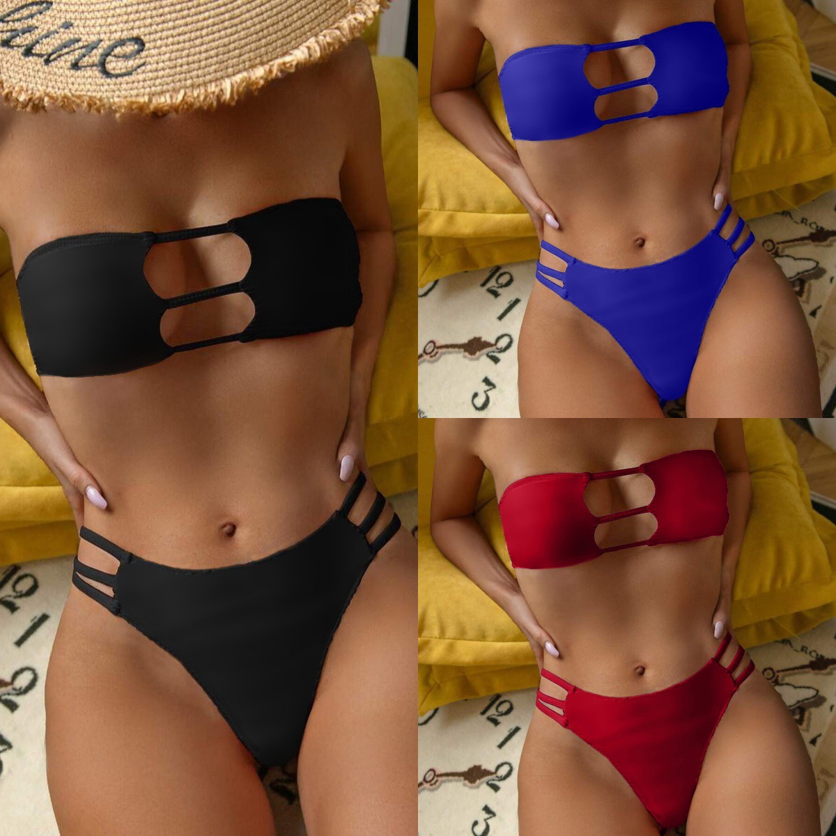 2025 新しいアマゾンチューブトップ中空セクシーなビキニ三角分割ヨーロッパとアメリカの水着女性ビーチビキニ