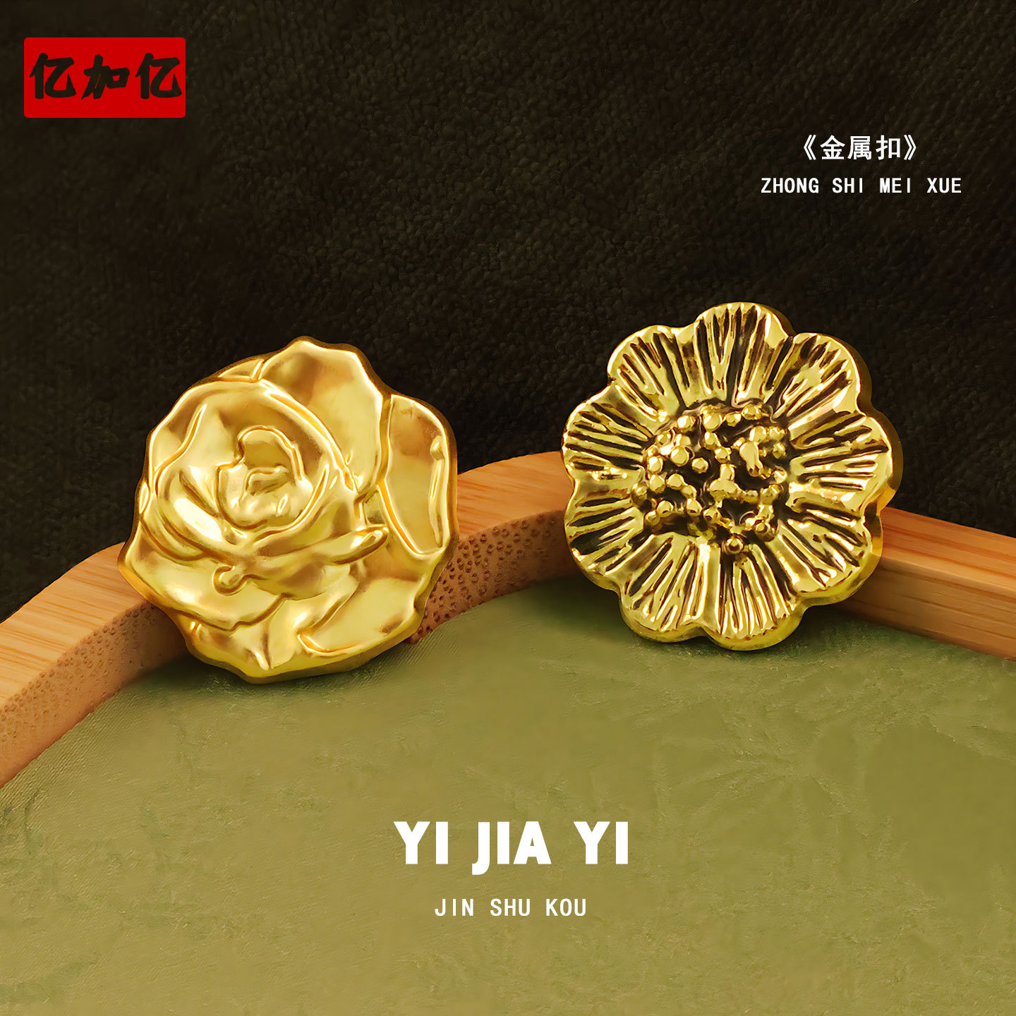 高档锌合金有脚纽扣雅金色黑油花朵金属扣子大衣风衣外套服装配饰