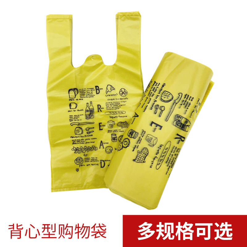 厚い黄色のプラスチックのベストの袋のスーパーマーケットのショッピングの日用の大きいサイズの手提げのビニール袋のファーストフードの包装の便利な袋