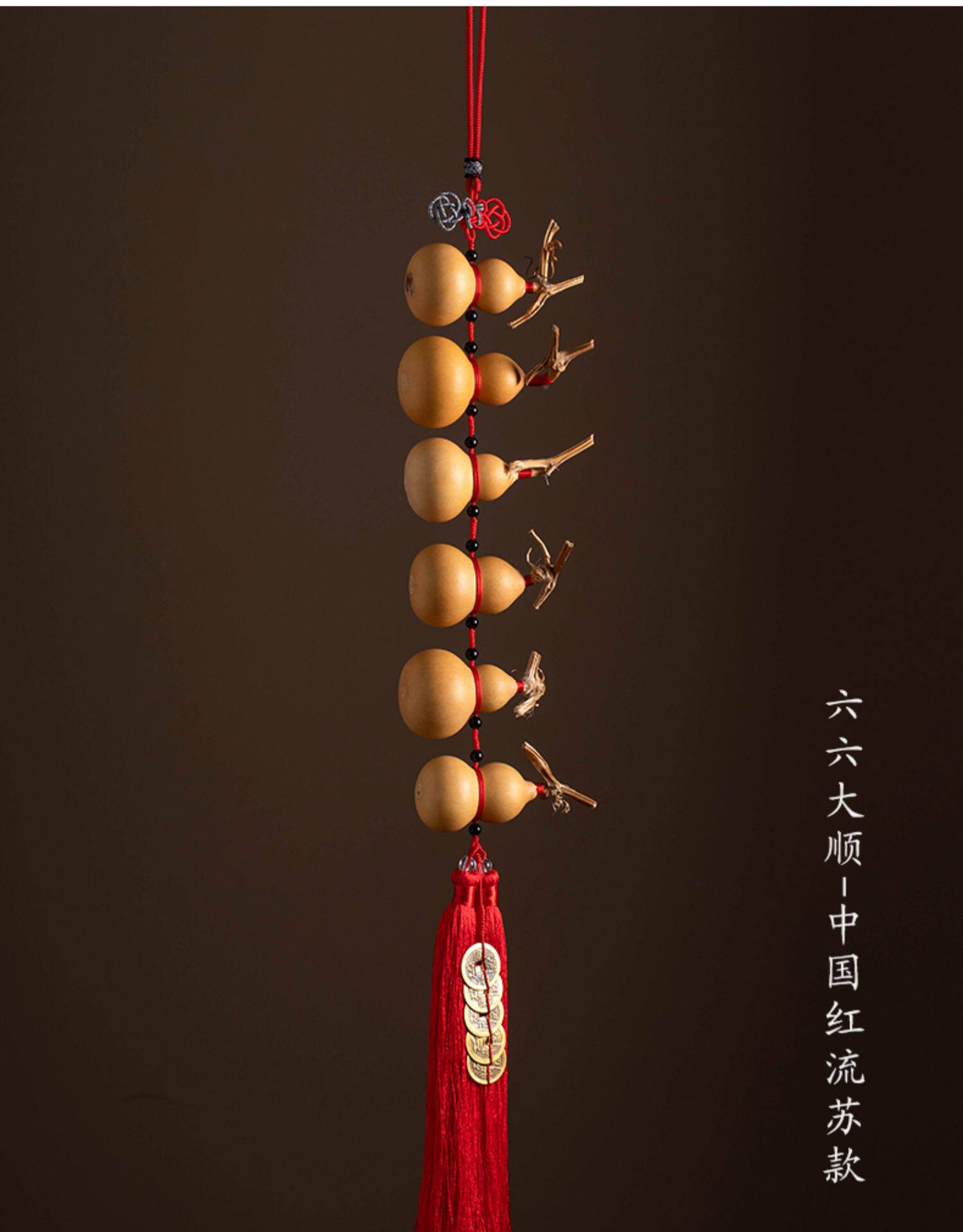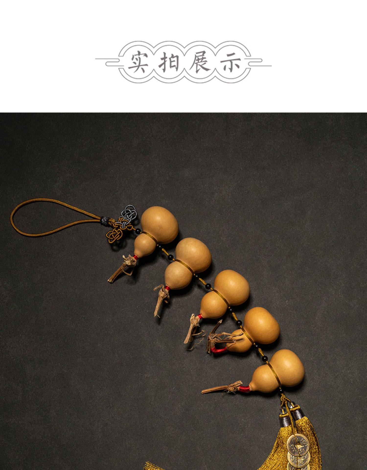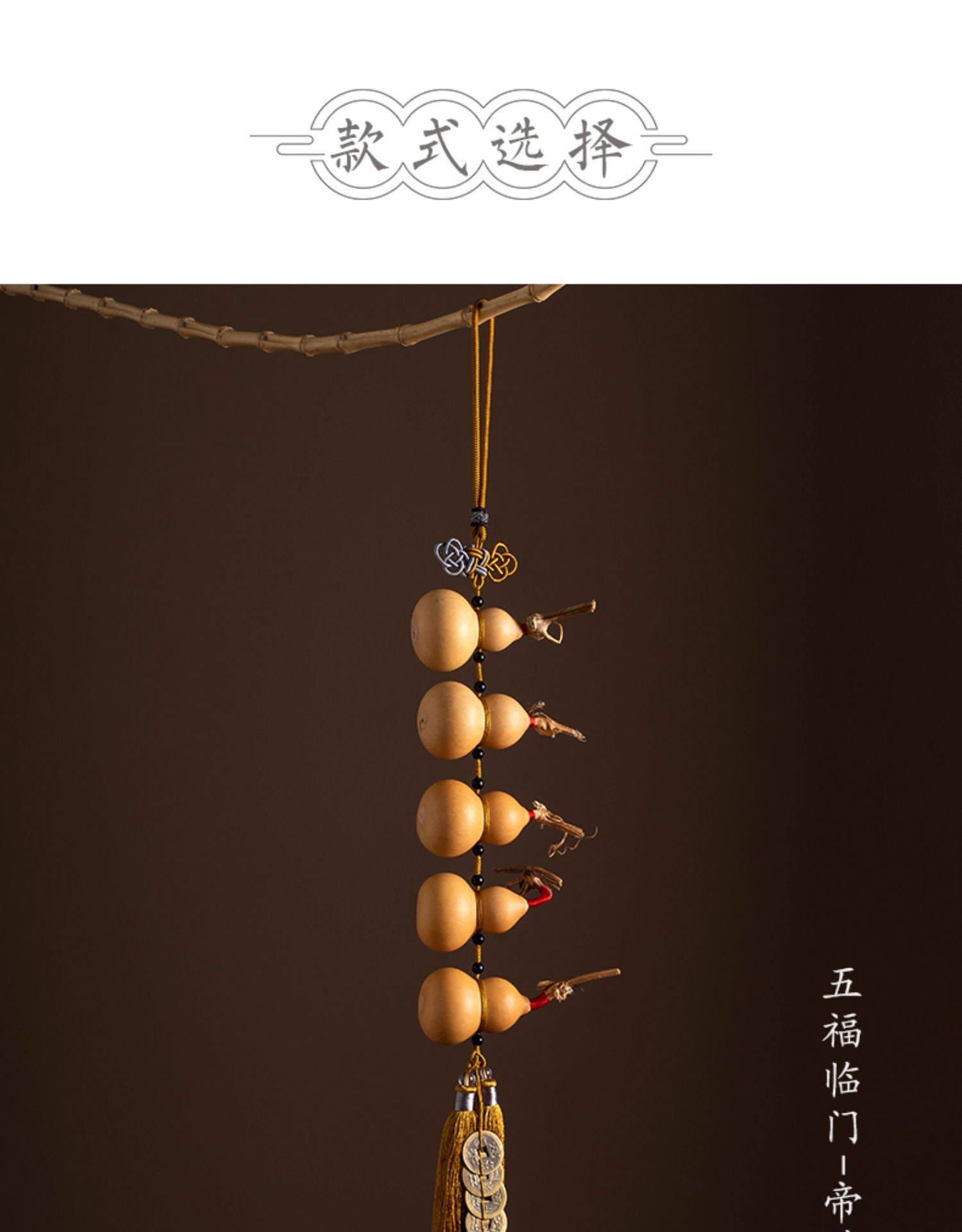 紫气东来天然葫芦挂件大门对门卧室黄铜五帝钱如意锁平安流苏挂饰