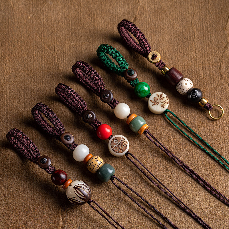 花素朱砂自動車キーホルダー菩提全手編み縄半製品ストラップ男女カップル玉ペンダント