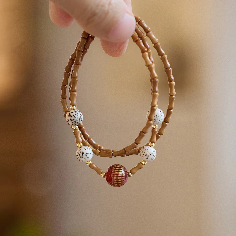 杭州の寺院の同じタイプの楠紅の夢の竹の節のオリーブの核の手の串の星の月の菩提の赤い瑪瑙の心は多宝のブレスレットを経ます。
