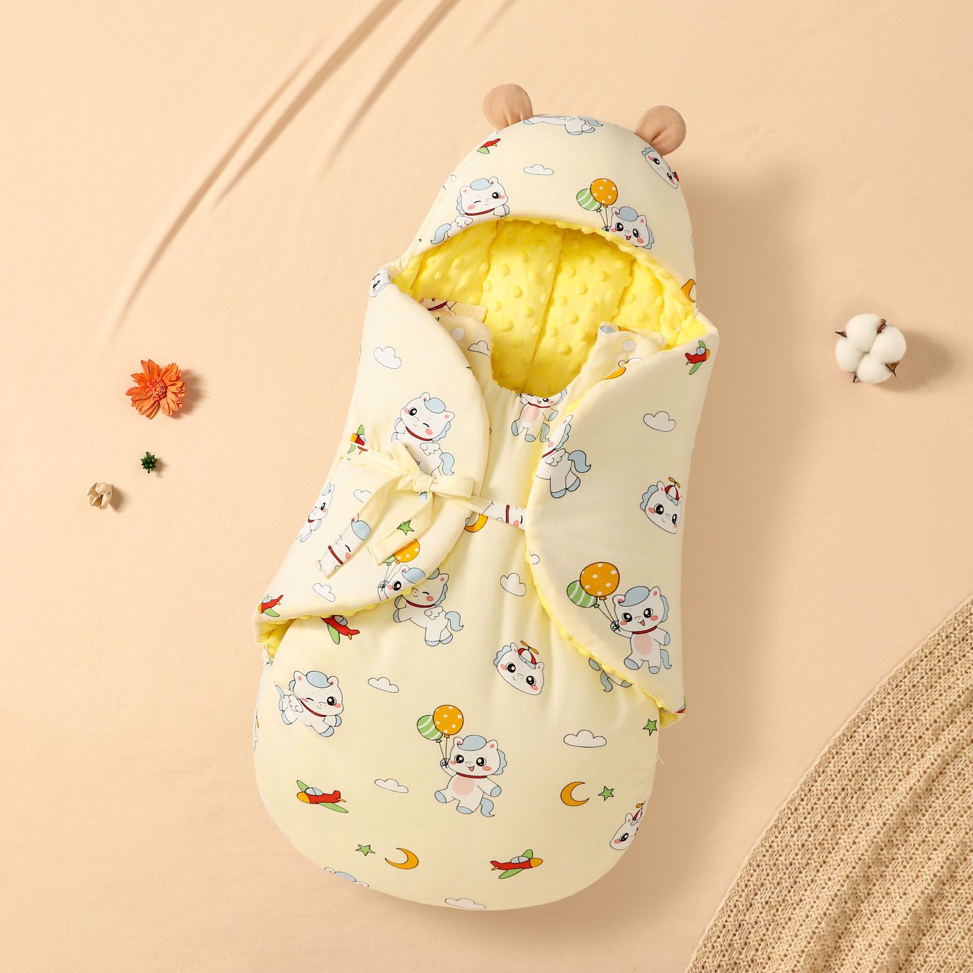 かわいいアニメの新生児綿ニットは冬に外出して保温バッグを厚くして産室の赤ちゃん用品に包まれている