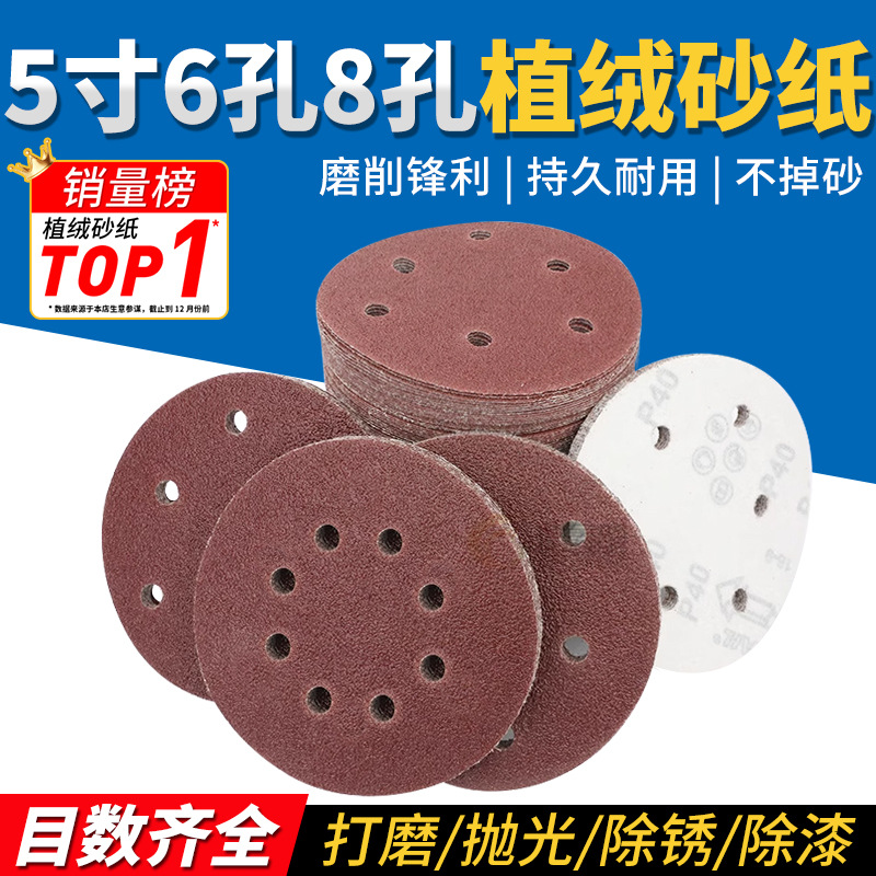 5インチ6穴8穴植毛サンドペーパーシート空気圧グラインダー粘着ディスクサンドペーパーシート自己粘着研磨サンドペーパーグラインディングシート