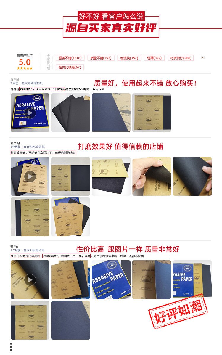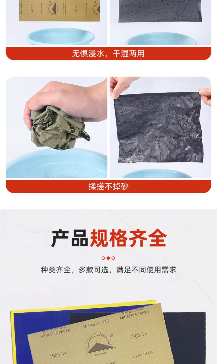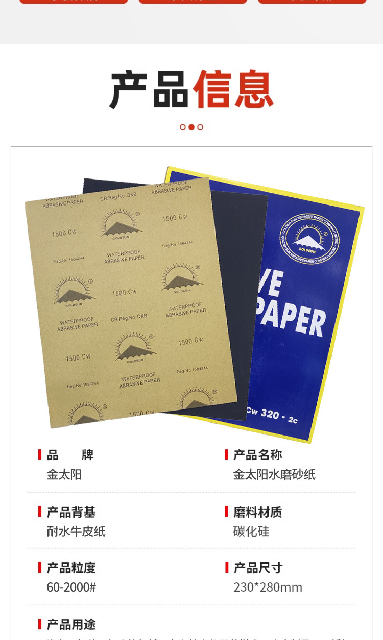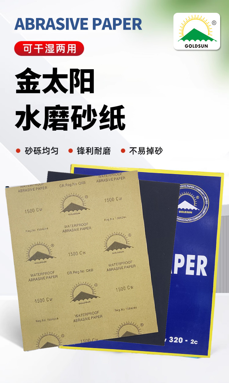 金太阳牌砂纸 水磨干磨两用 黑碳化硅砂纸 打磨砂纸金阳光