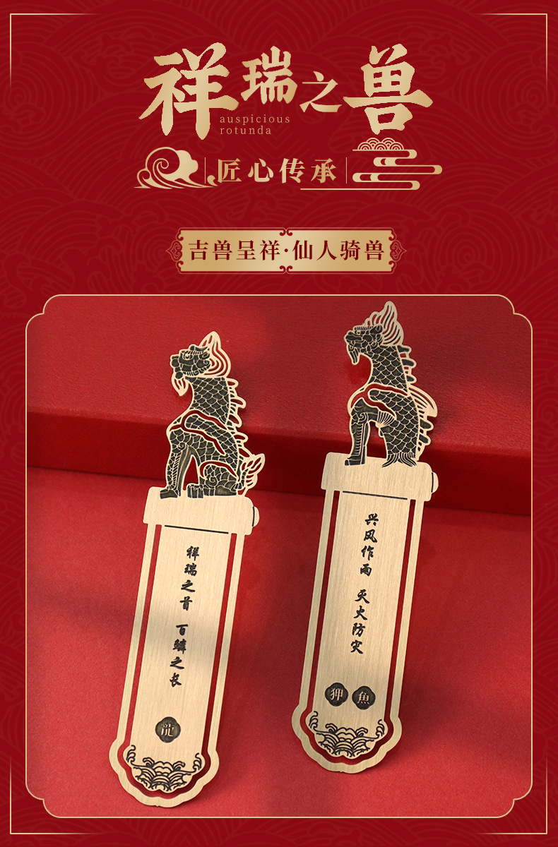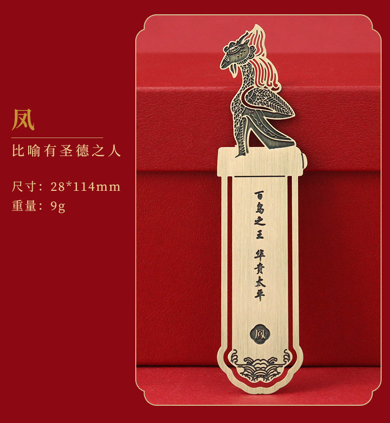 山海経鳳凰麒麟金属透かしブックマーク国潮学生創意古典古風神獣ブックマークお土産