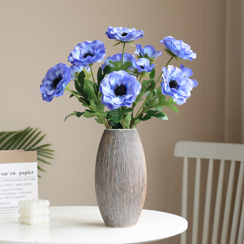 4.仿真花的花杆可以根据要求调节长度:需要短,可以直接折弯或剪枝处理;需要长,可以接枝干。放入花器时可以在非透明花器里垫入报纸、石头等增加高度,透明花器可以使用石头等装饰品.