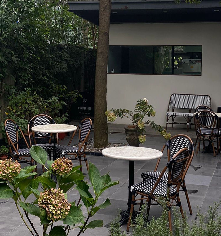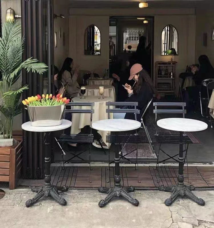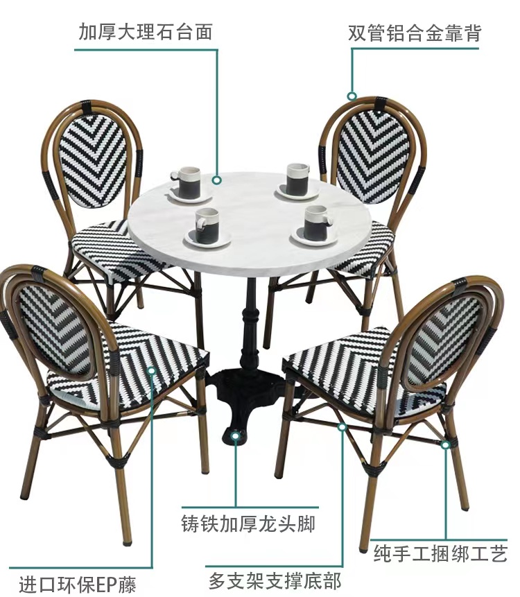 戸外岩板大理石食卓フレンチカフェ洋食店ミルクティー店民宿復古編藤テーブル椅子セット