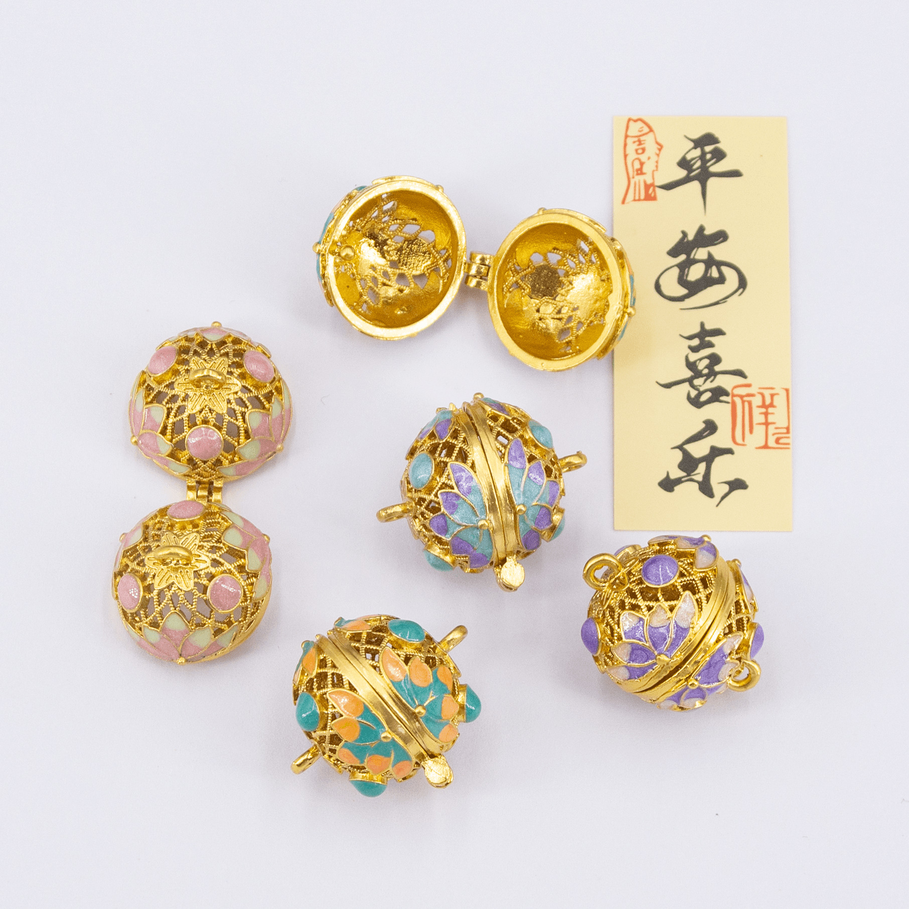 景泰藍香嚢双ペンダント保色古風透かし彫りは香嚢球ペンダント香丸宮鈴アクセサリー部品を開くことができます。