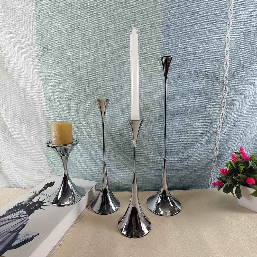クロスボーダーヨーロッパの高級感のある銀色の燭台の金属はレストランのホテルのバーの客間の柔らかい装飾品を並べます。