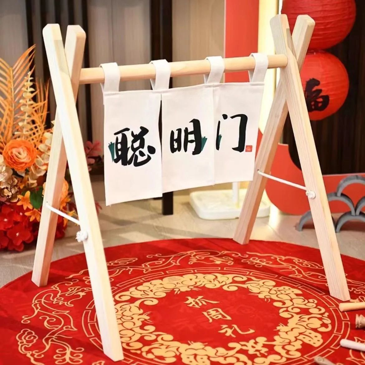 宝宝周岁聪明门抓周道具仪式过葱门木架套餐装饰多巴胺门架