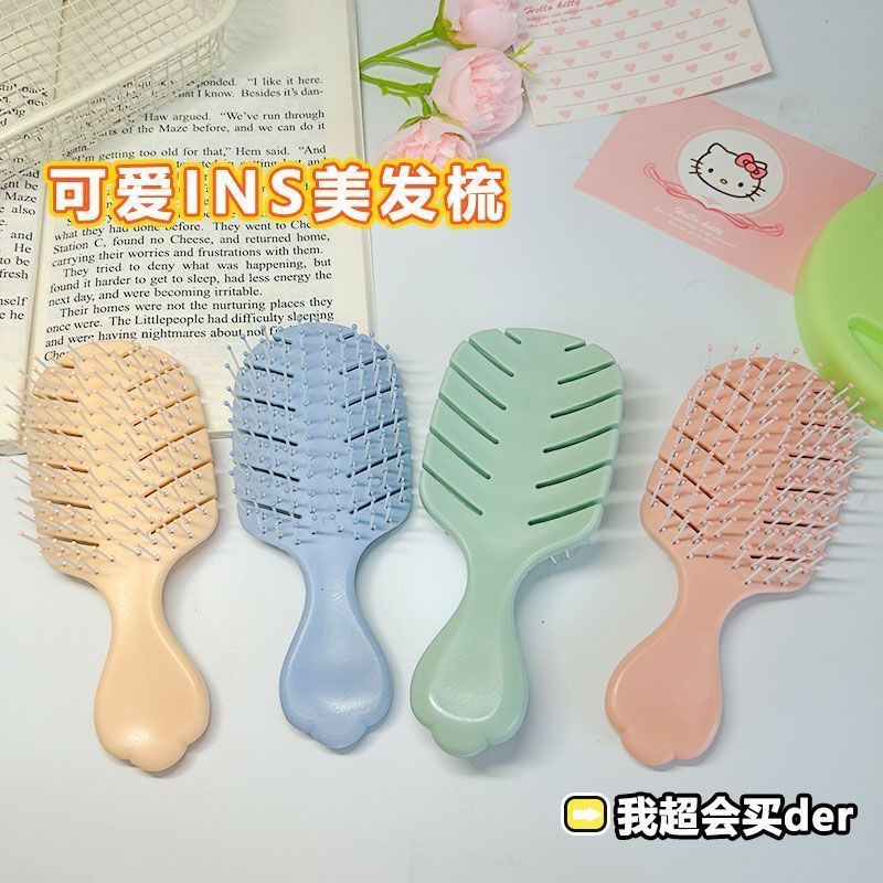 迷你便携卷发儿童梳镂空叶子排骨梳蓬松干湿两用迷你梳女士按摩梳