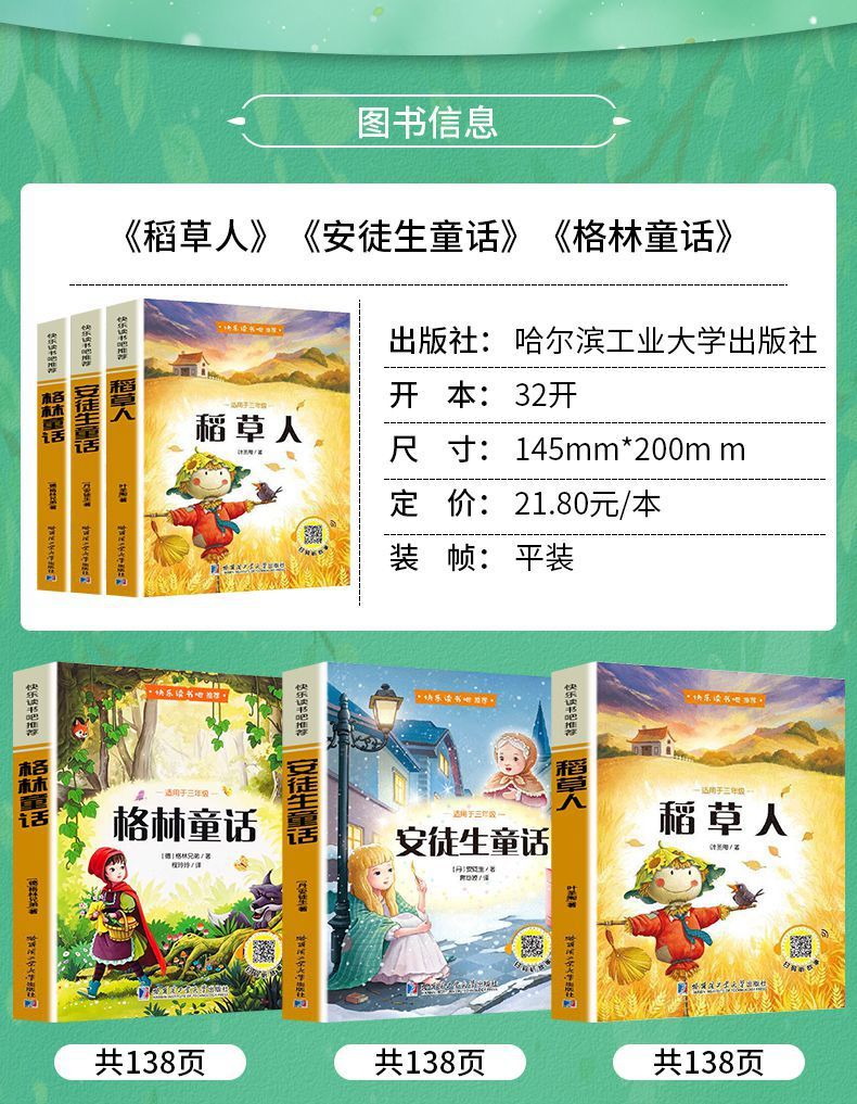 楽しく本を読みましょう。三年生の上巻は全部で3冊の正規書籍のかかしの葉聖陶アンデルセン童話です。
